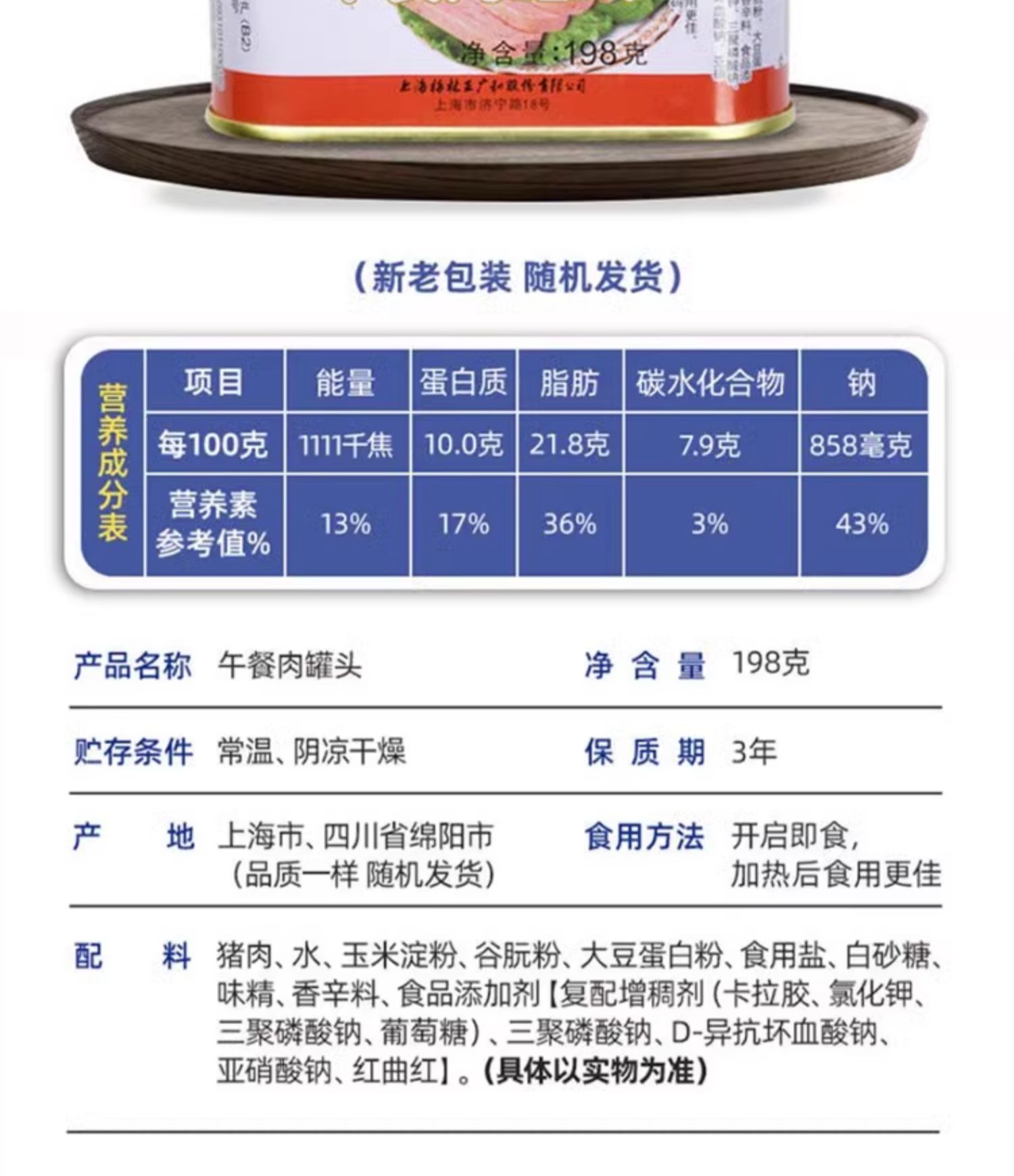 📦 | 【10 cans】lunch meat 198g | ¥112.0 / ≈ 1 349 ₽ | 342 | 6029269218133 | |