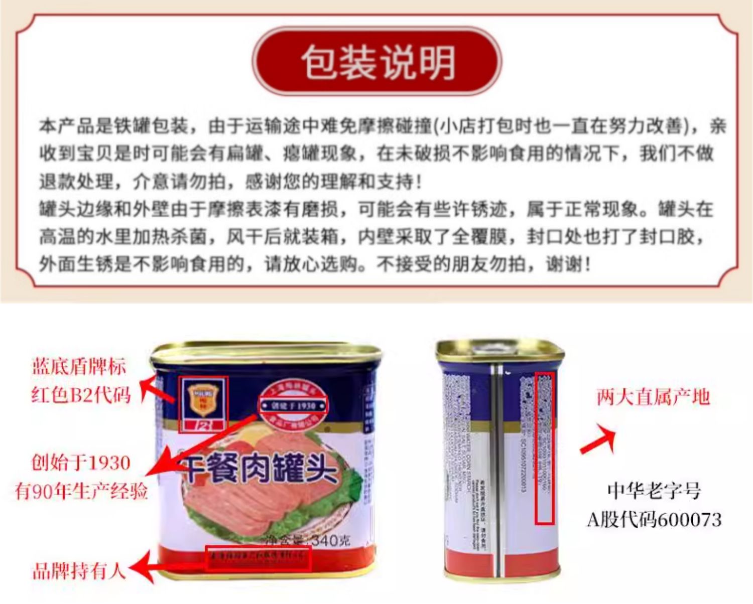 📦 | 【10 cans】lunch meat 340g | ¥177.0 / ≈ 2 132 ₽ | 135 | 6029269218143 |