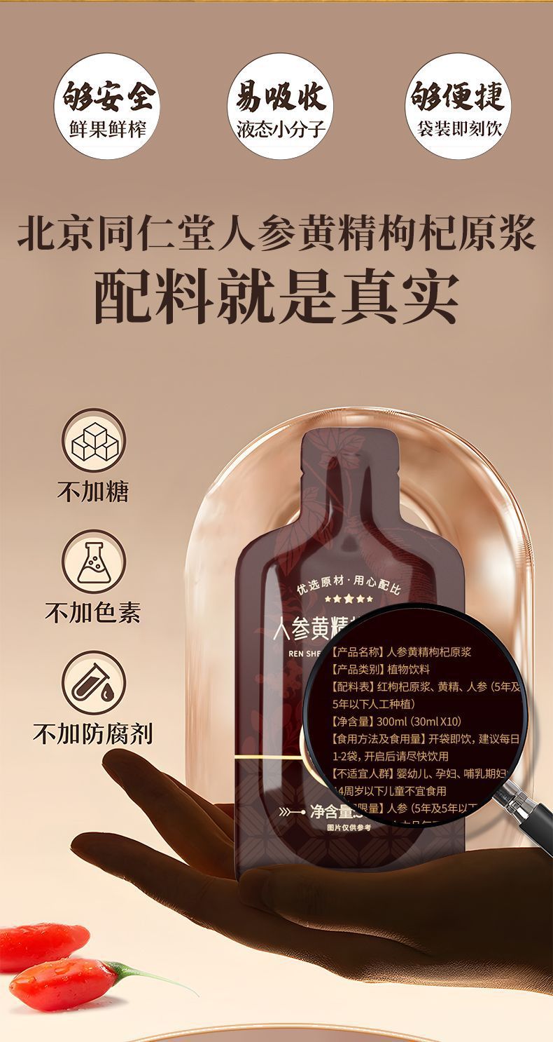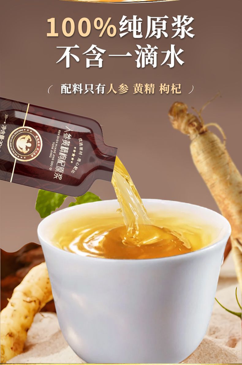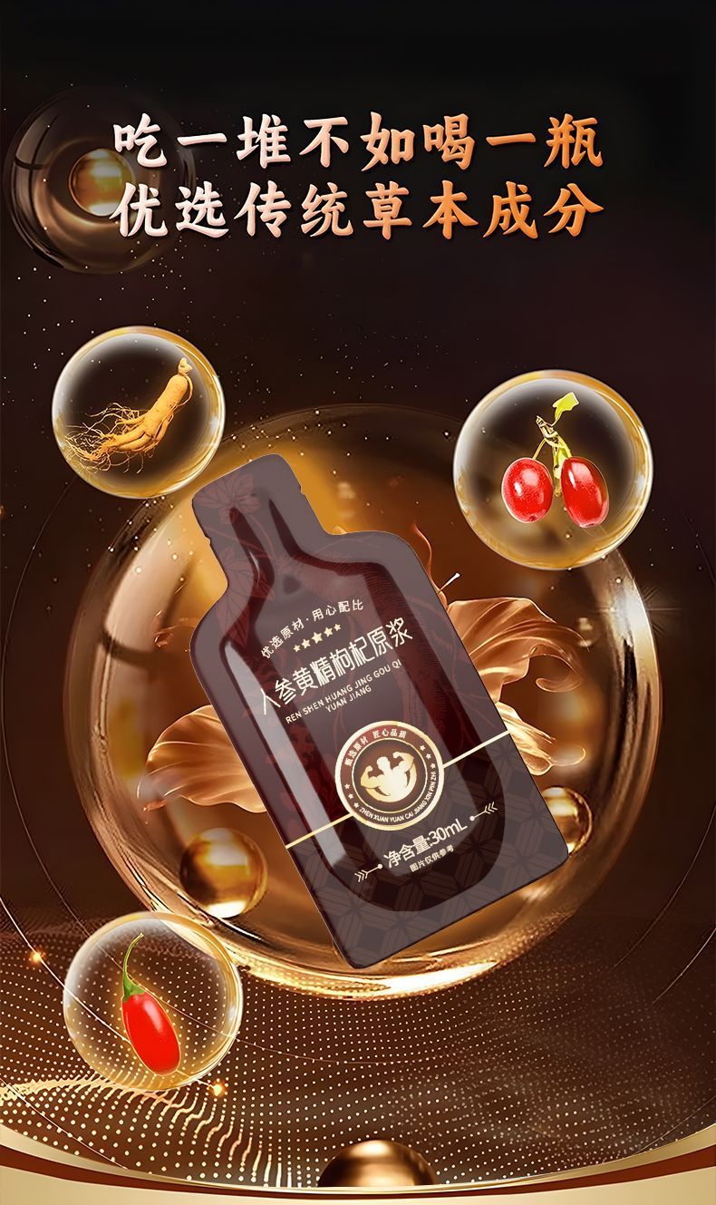 Жидкая добавка из женьшеня, хуацзина и ягод годжи для пожилых