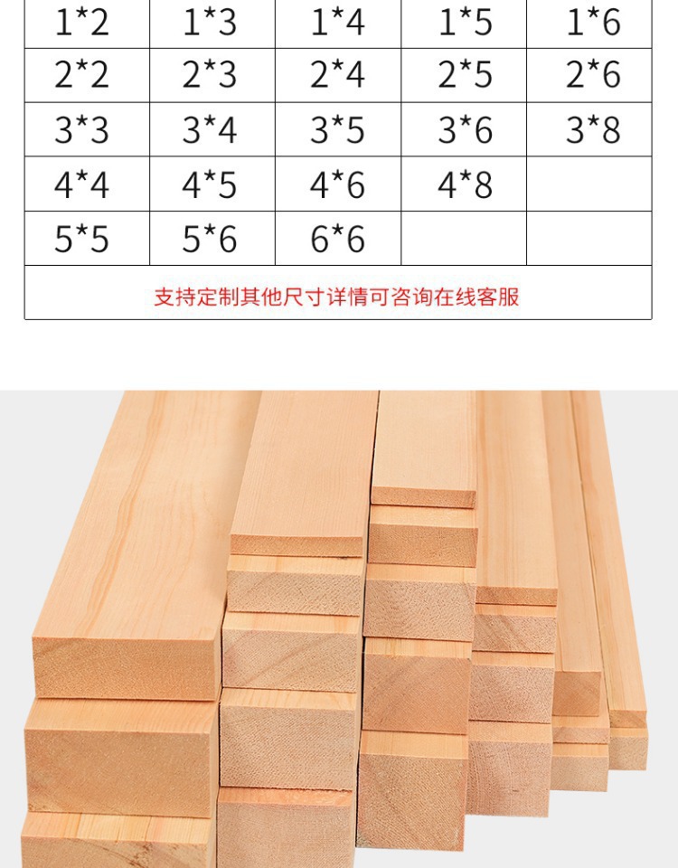 ![]() | Pine wood 1cm*3cm long 80cm 2 pieces | ¥10.36 / ≈ 125 ₽ | 199 | 5864636740042 | |