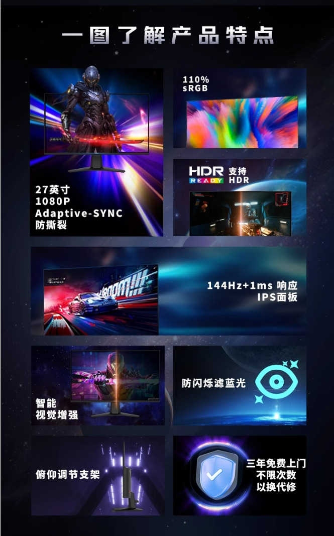 Wei/Xing G275L E14 27-дюймовый 144Hz игровой LCD монитор VGA+HDMI