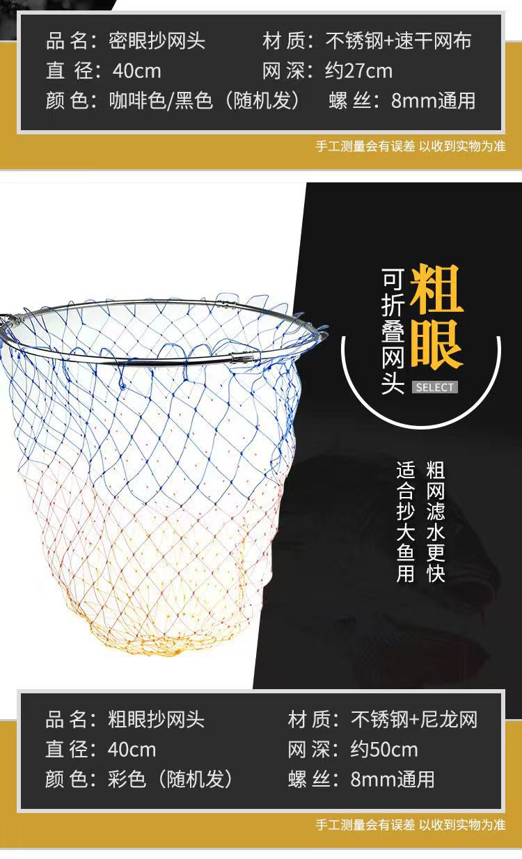Головка рыболовной сети из нержавеющей стали, складная, с клеевым покрытием, цветная рыболовная сеть, 40 см 50 см, сетка с мелкими и крупными ячейками