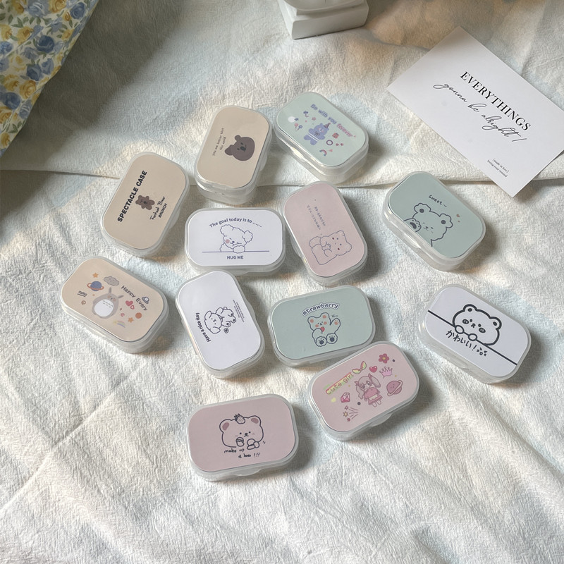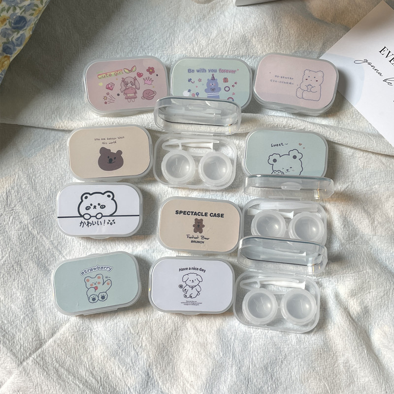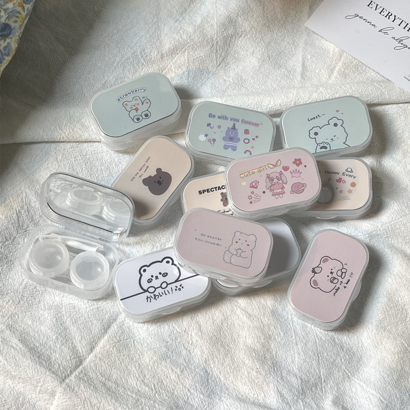Кейс для контактных линз с зеркалом, милый и портативный, коробка для ухода за линзами/Kj276 Простая коробка