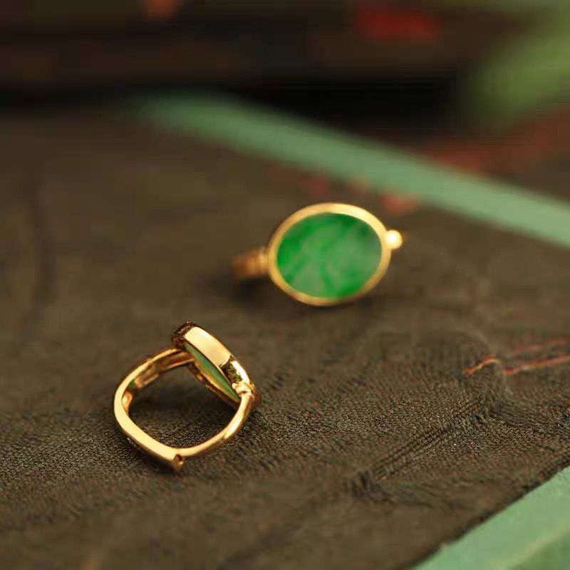 Серьги из натурального халцедона A-качества, ярко-зеленые круглые серьги из нефрита, нишевый дизайн, модные серьги, резьба по нефриту для женщин