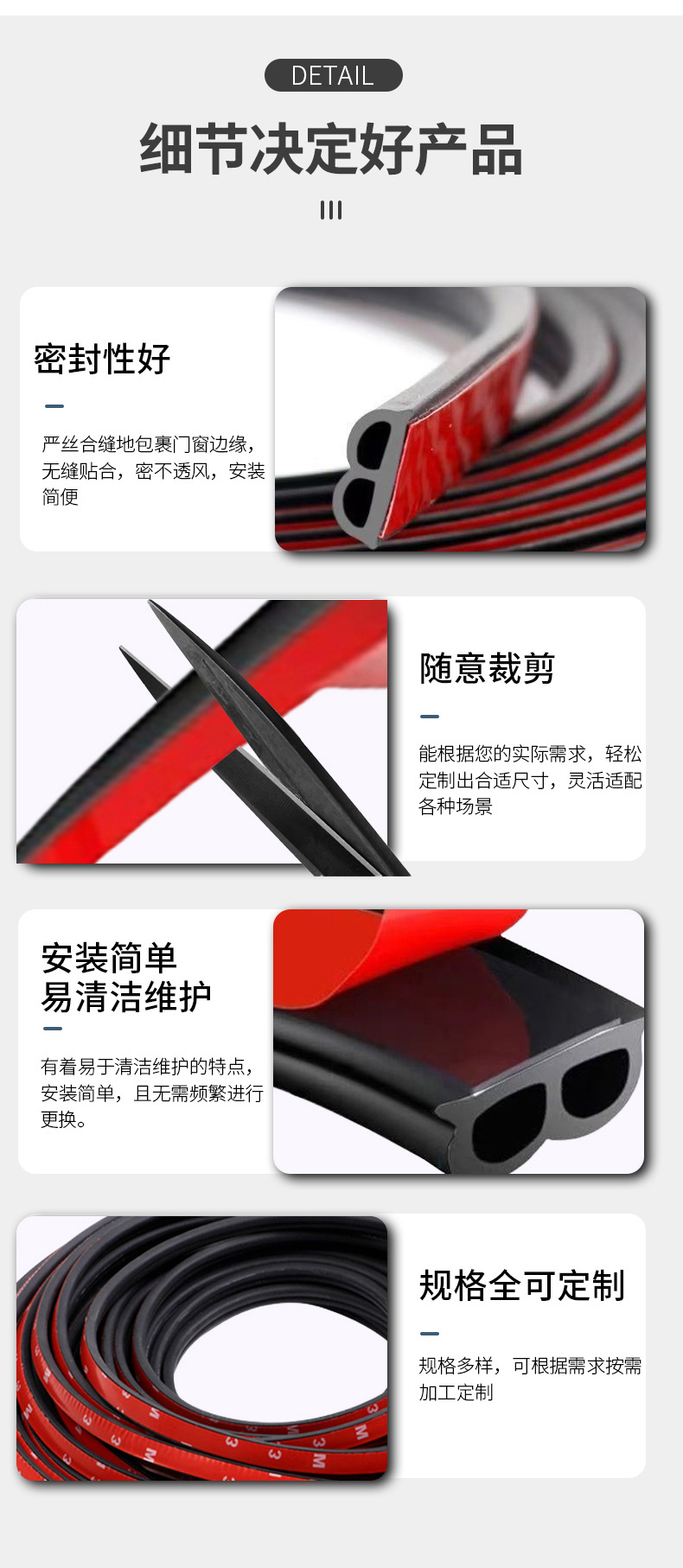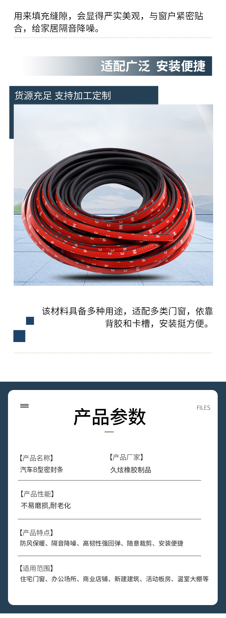 Уплотнительная лента типа B для автомобилей, звукопоглощающая и пылезащитная, модифицированная EPDM, самоклеящаяся уплотнительная лента для дверей