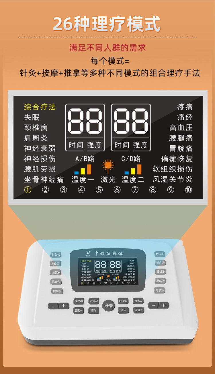 Прибор для электролечения Qiao Xin со среднечастотным импульсом, инструмент для акупунктуры, для дренажа меридианов всего тела, многофункциональный прибор комплексной терапии