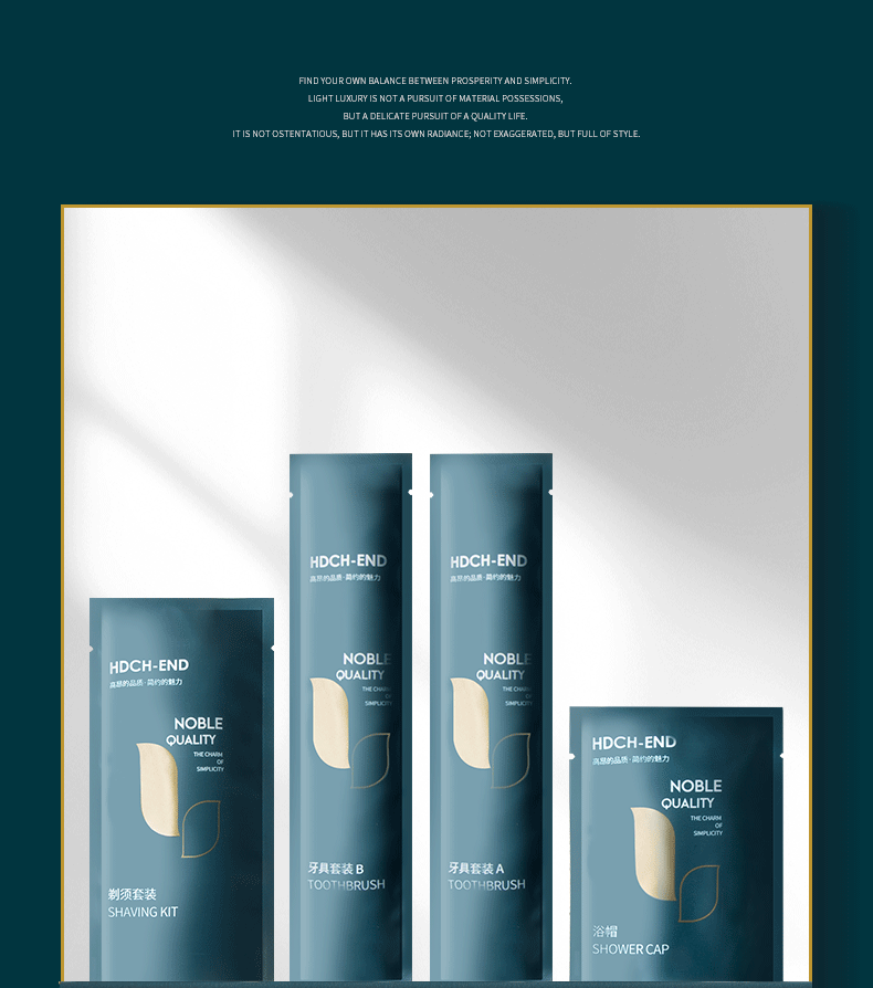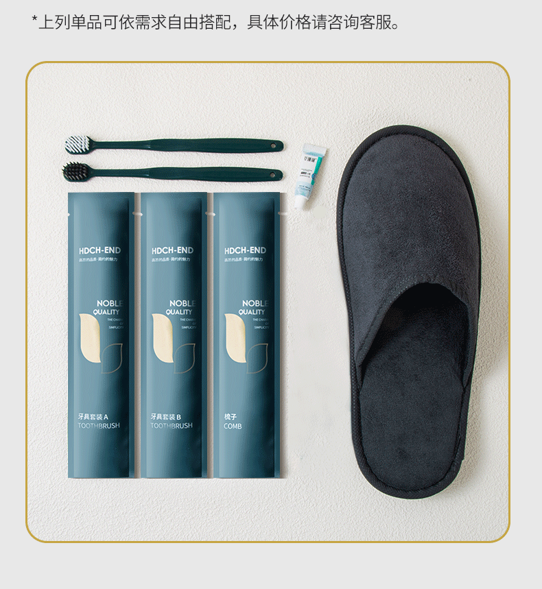 Набор продуктов Cotton ball, Disposable slippers, Disposable shower cap, Disposable soap, Disposable razor, Disposable toothbrush, Disposable shower gel, Disposable comb, Disposable shampoo, Disposable toothpaste, Disposable shoe polishing cloth, Disposable shaving cream, Disposable hair conditioner, Disposable body lotion