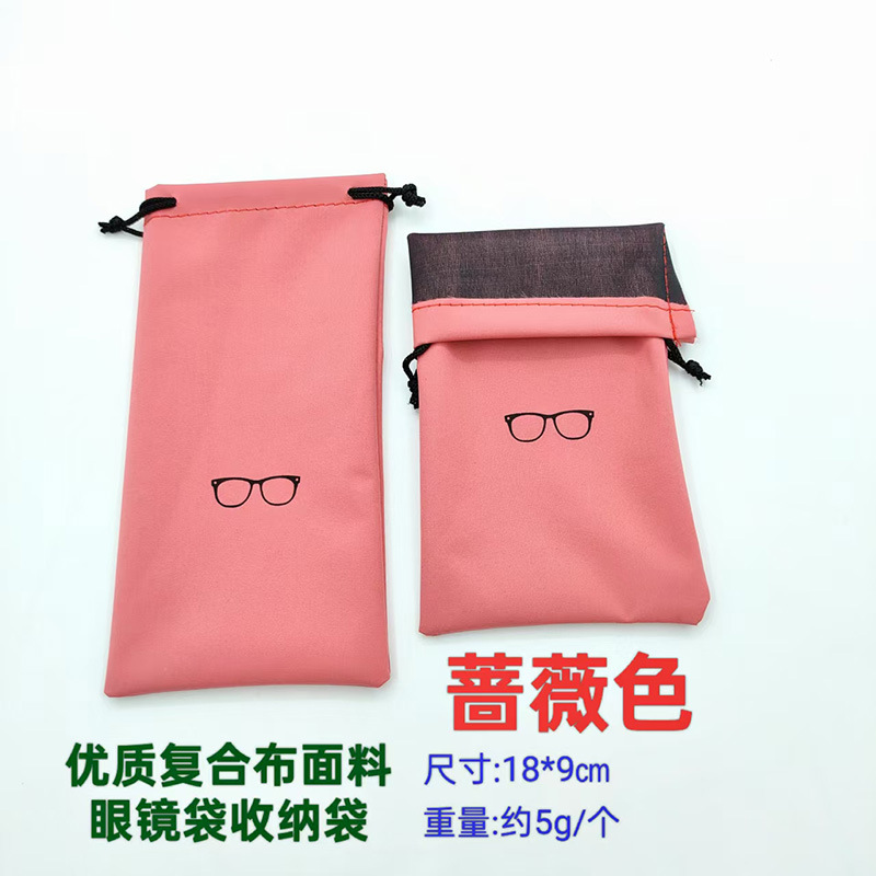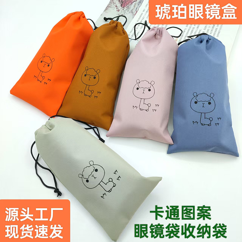 本链接眼镜袋是优质复合布面料,内衬无纺布vs针织底。有五色可选。袋子印刷可爱小眼镜图案,本款是拉绳束口眼镜袋收纳袋,可以装各款太阳镜,墨镜夹片,还可以收纳充电器充电线,眼罩以及口红钥匙和各类小饰品。有效分类有效收纳。