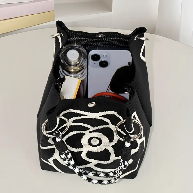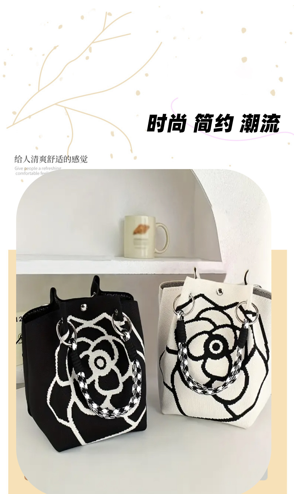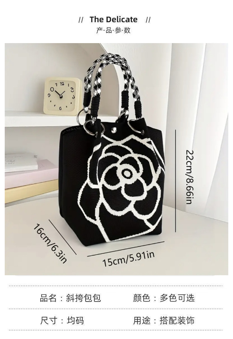 Новая вязаная сумка с цветком камелии, большой объем, повседневная, универсальная, портативная