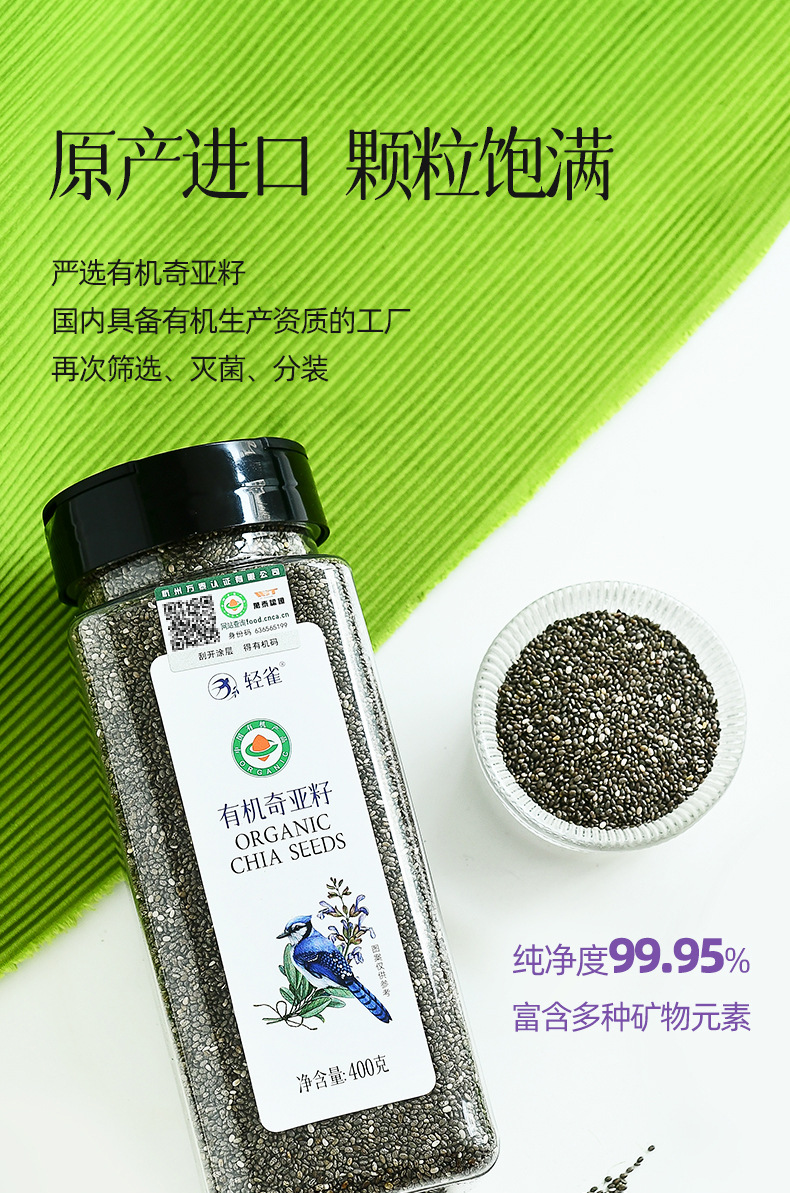 Органические семена чиа Qingque, импортные, с высоким содержанием белка и клетчатки, легкая замена еды, насыщение, фитнес-питание, напиток, кетогенная диета