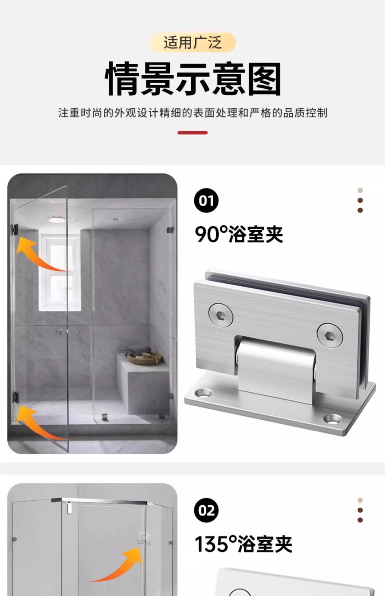 Утолщенный 304 нержавеющая сталь, 90-градусная скоба для душевой, матовый черный клип для стеклянной двери, 180-градусная складная петля