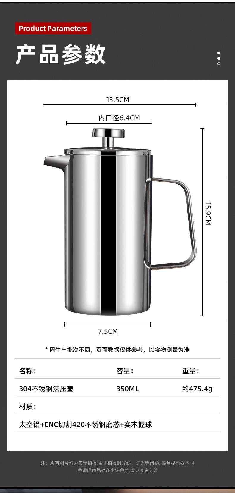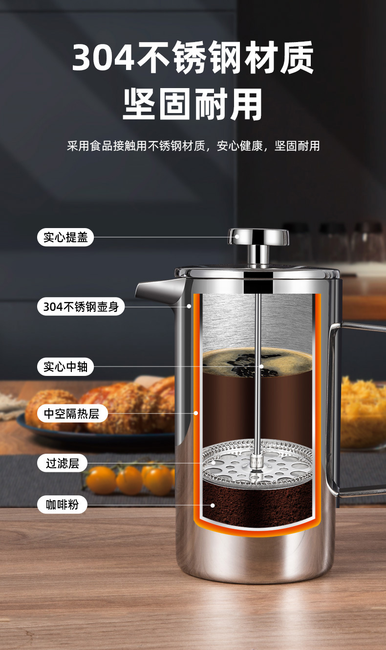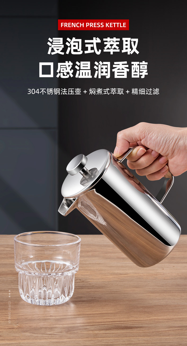 Прямые поставки с завода для внешней торговли, френч-пресс из нержавеющей стали 304, вспениватель для кофе, фильтровальное устройство, большой объем
