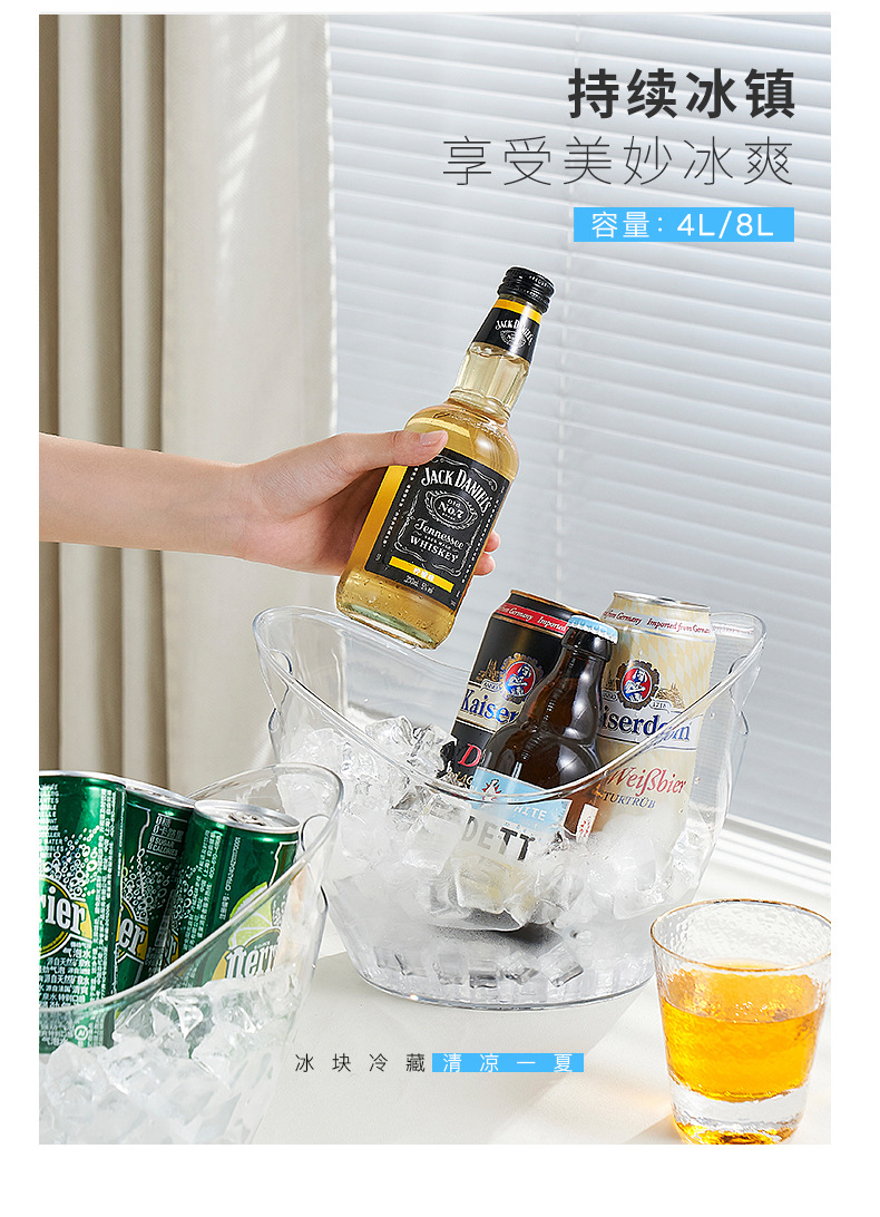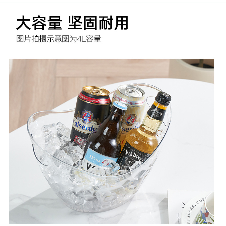 Пластиковое ведро для льда 4L, большая емкость для пива и шампанского, прозрачное ведро для KTV и красного вина