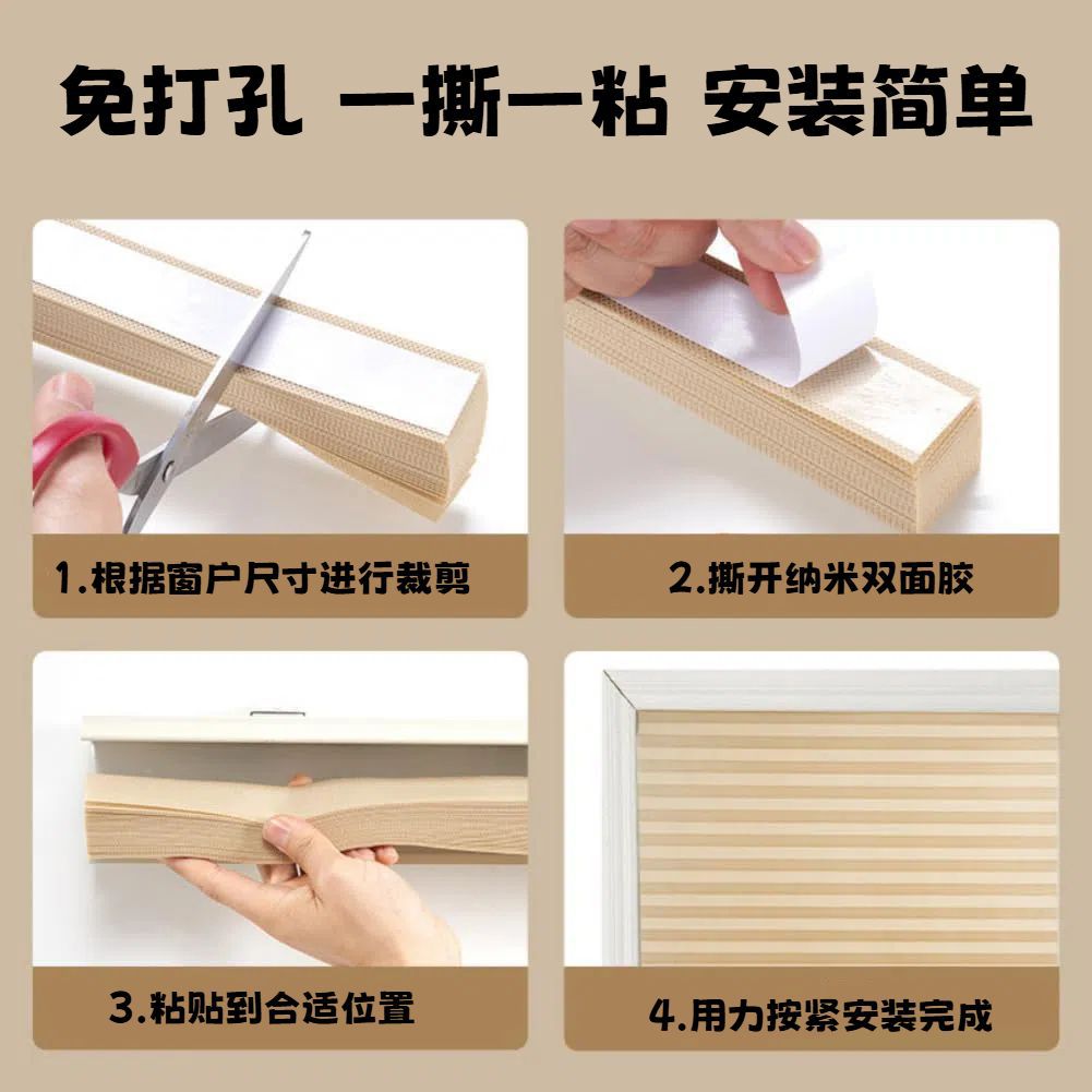 Плиссированные шторы, самоклеящиеся солнцезащитные экраны без сверления, простая установка, балконные солнцезащитные шторы, водонепроницаемые шторы для ванной