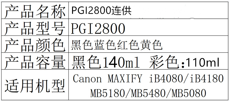 Подходит для картриджа с чернилами 5-го поколения Canon Pgi2800 Ib4080 Ib5080 с аксессуарами