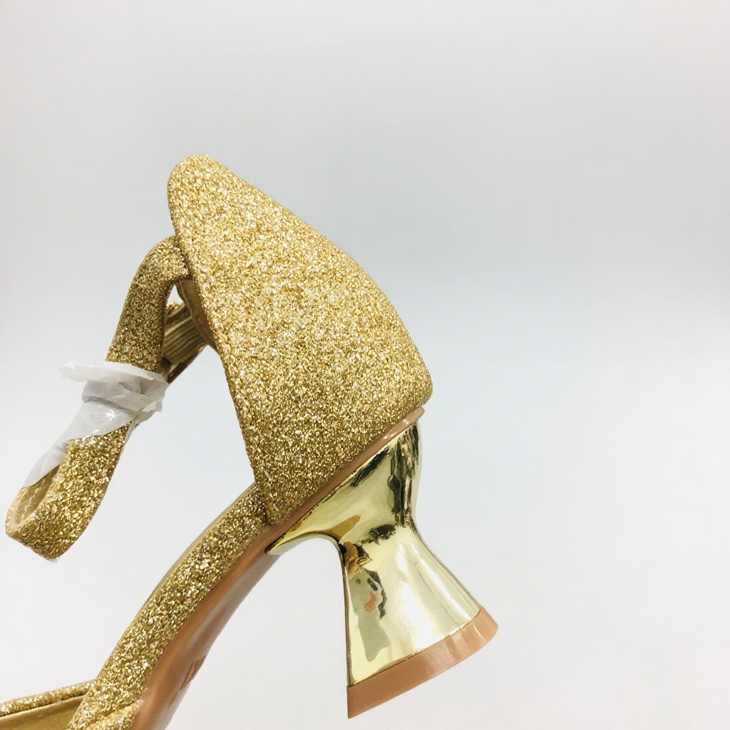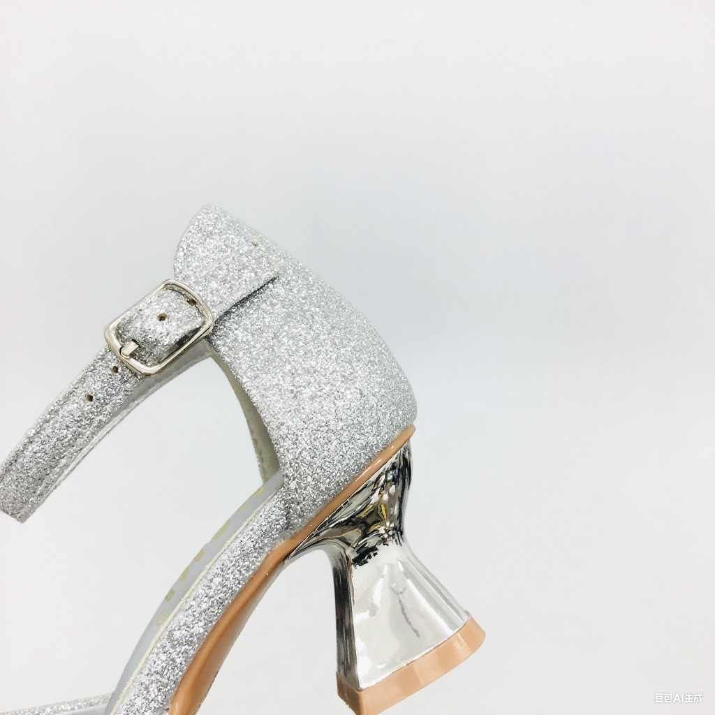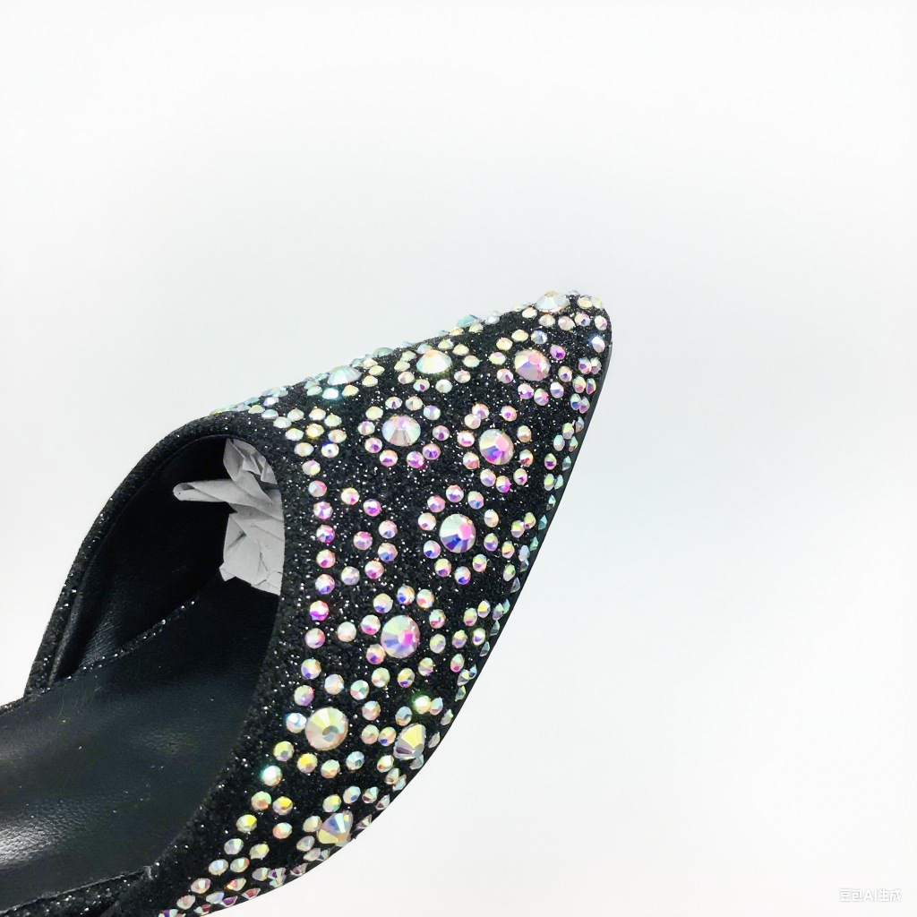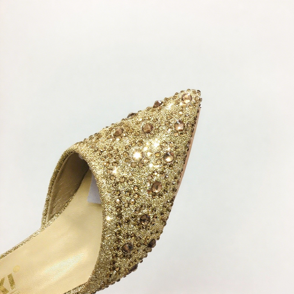 Новые экспортные туфли на высоком каблуке 2025 Толстый каблук Обувь с открытым носом Острый носок Полые сандалии с блестящими стразами для женщин