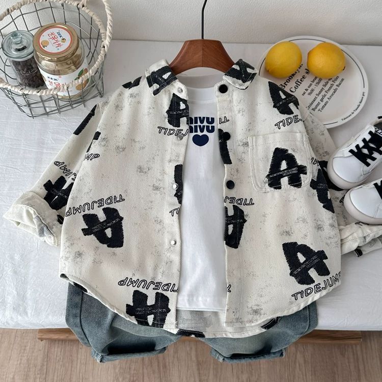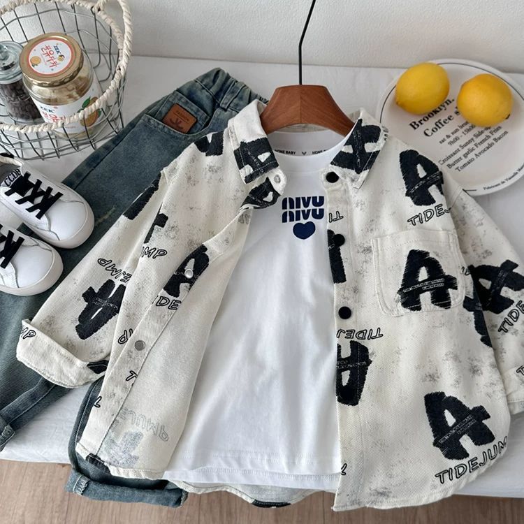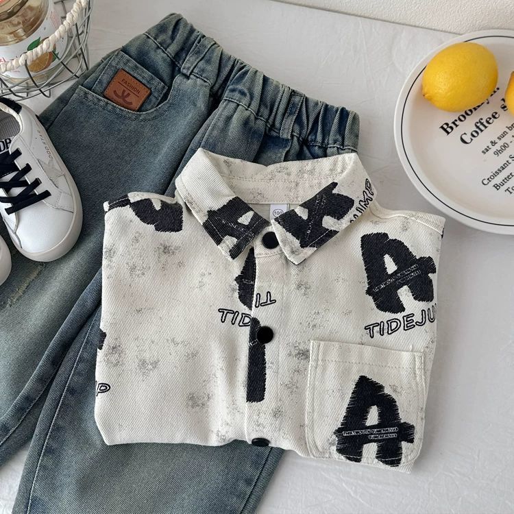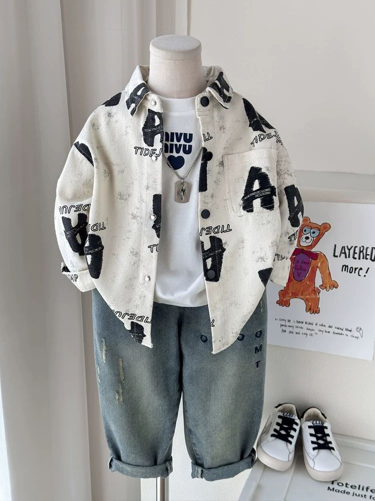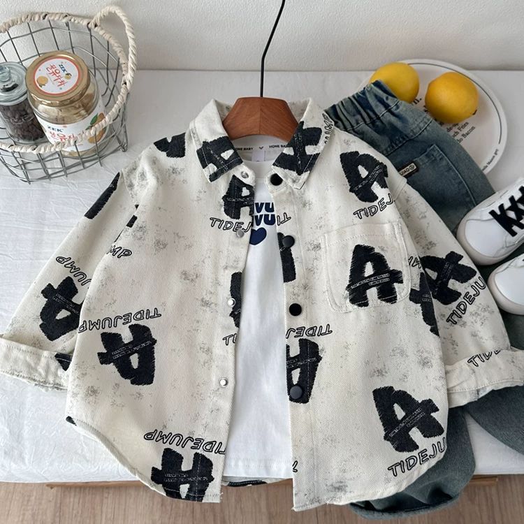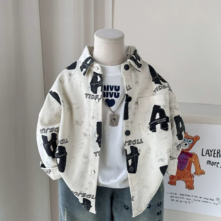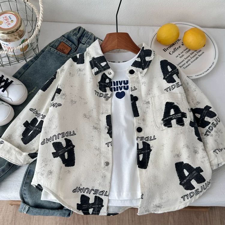 Рубашки с длинным рукавом для мальчиков, весенне-осенний стиль, новые модные повседневные куртки 2025 года, стильные и трендовые