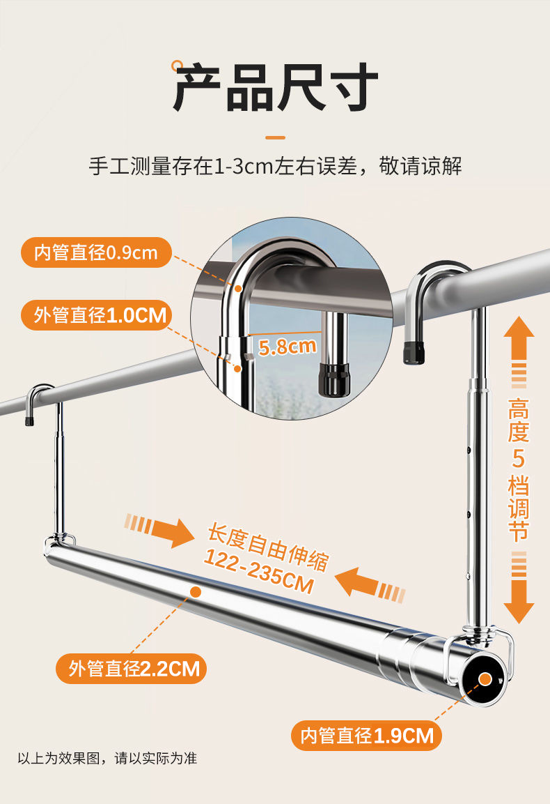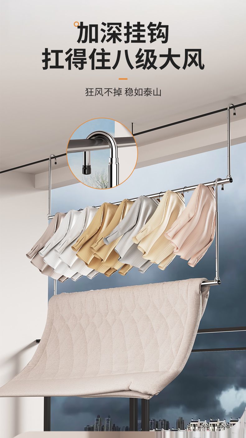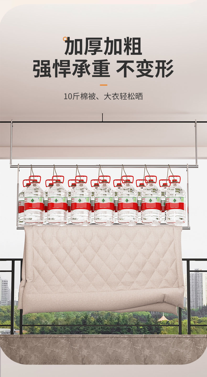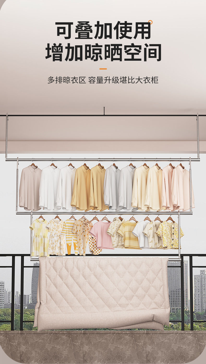 Телескопическая сушилка для одежды из нержавеющей стали для домашнего балкона, регулируемая сушилка, подвешивание одежды без сверления, инструмент для сушки одеял