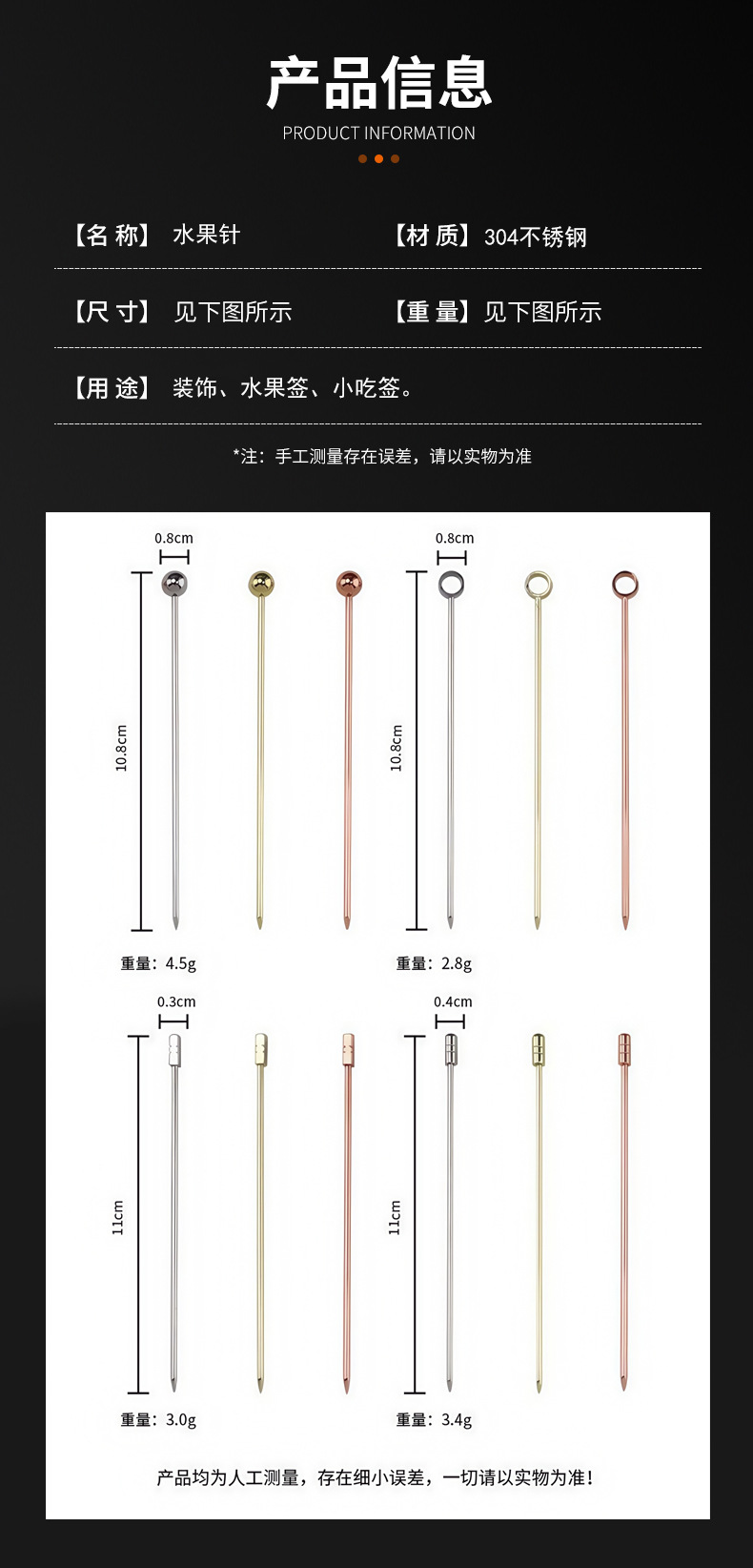 Игла для фруктов из нержавеющей стали 304, коктейльная шпажка, декоративная игла, фруктовая вилка из нержавеющей стали