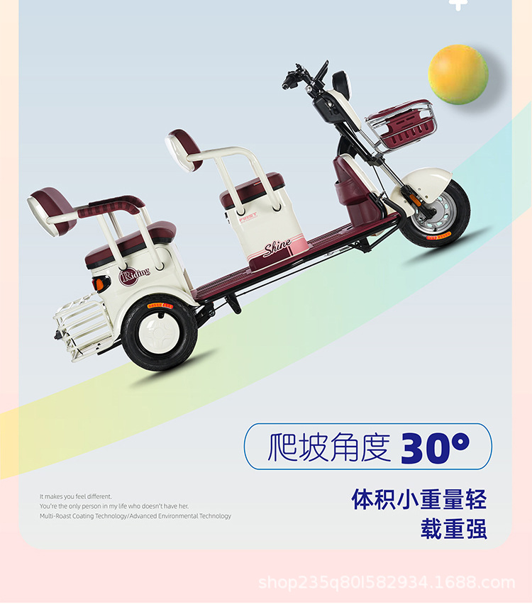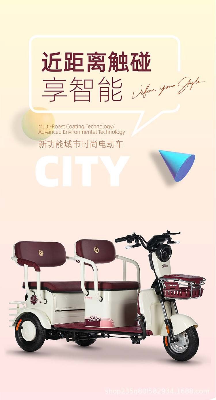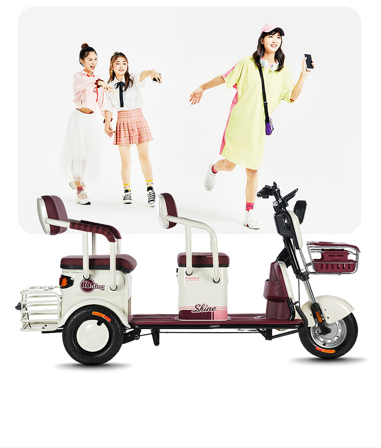 Двухрядный электрический трицикл, скутер для досуга, бытовой пассажирский и грузовой двухцелевой женский аккумуляторный автомобиль, родительско-дошкольный трансфер
