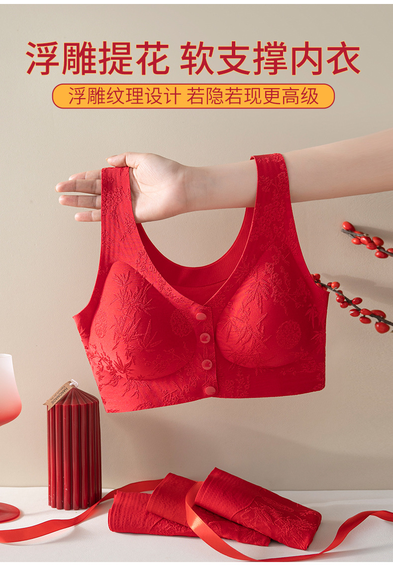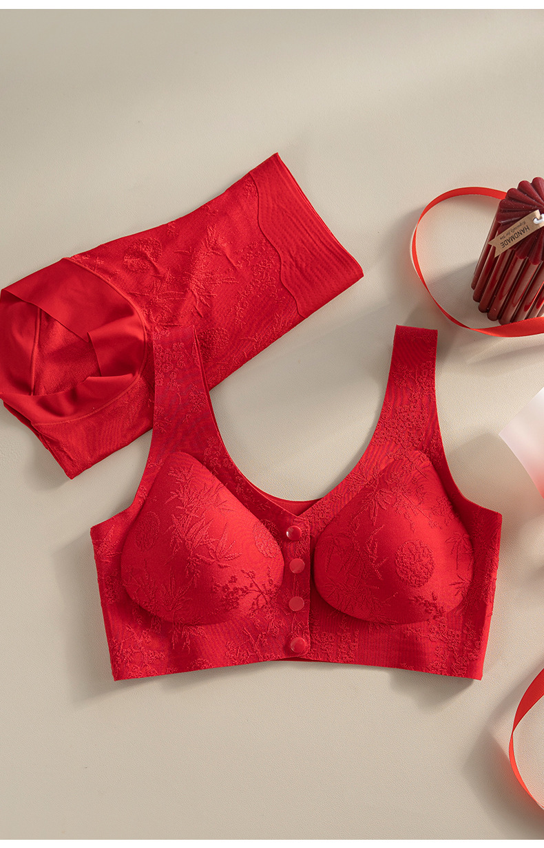 Красивый домашний бюстгальтер с передними пуговицами для женщин среднего и пожилого возраста, китайский стиль, тисненный жаккард, без ободов, легко надевать и снимать, бесшовное белье для мам