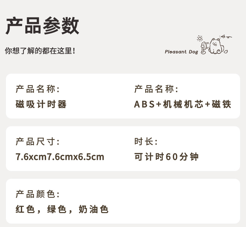材质:ABS+机械机芯+磁铁
