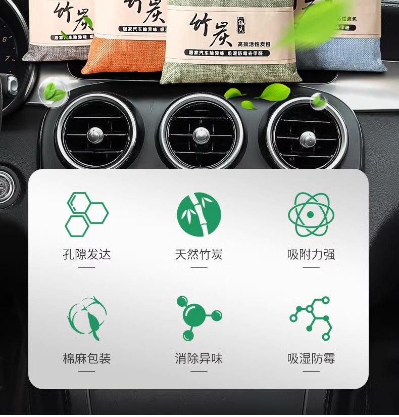 Сумка из бамбукового угля для автомобиля, активированный уголь для нового автомобиля, удаление формальдегида, удаление запахов, специальное средство для удаления запахов в автомобиле