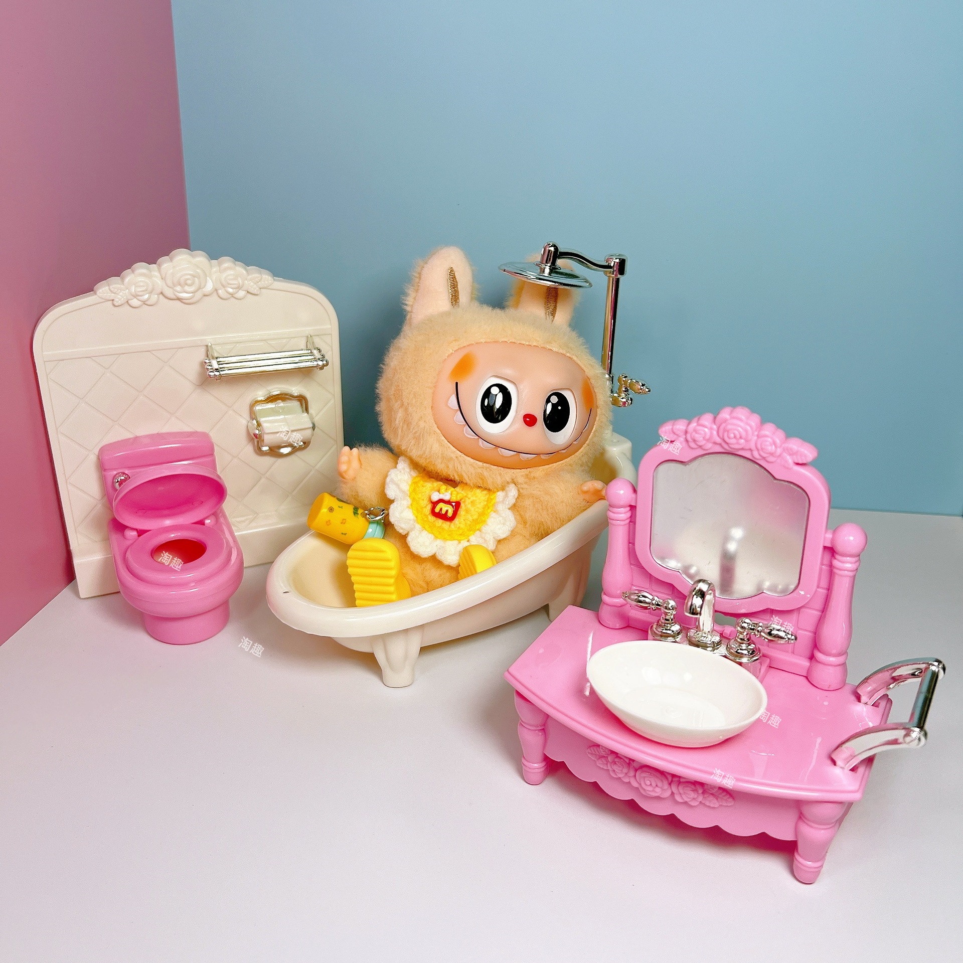 Симулированные миниатюрные аксессуары для ванной кукольного домика, плюшевые аксессуары для кукол, игрушки для ванной, комплект мини-игрушек