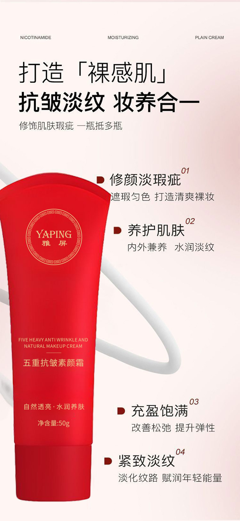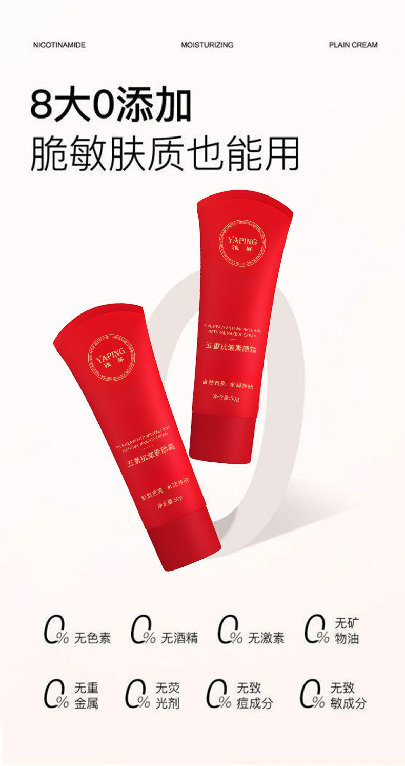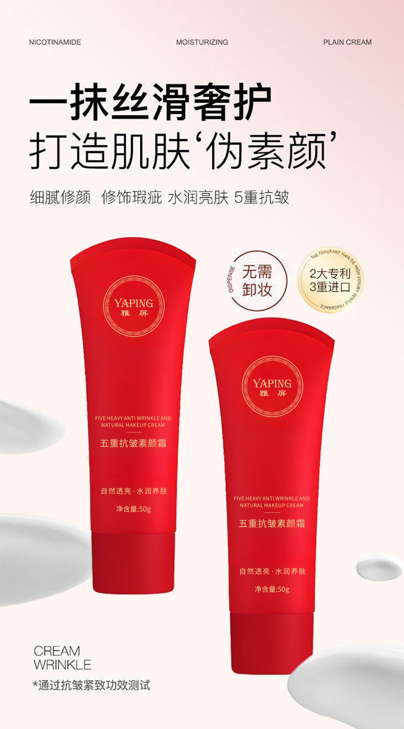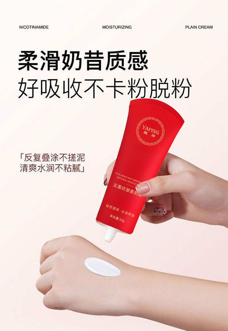 Крем для макияжа Япин с пятью действиями против морщин, осветляет и корректирует тон кожи, легкий и нежный, не сушит, не создает эффекта белизны, крем для ленивого макияжа
