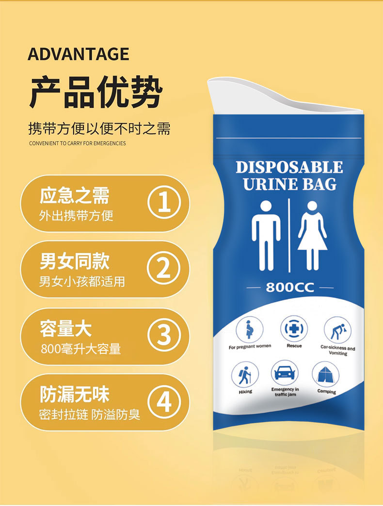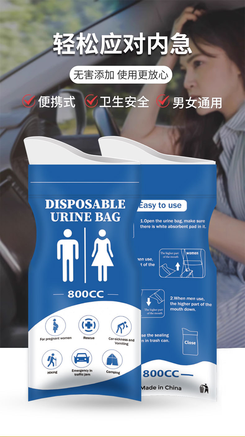 Одноразовая сумка для мочи 800 мл, автомобильная сумка для экстренных случаев, унисекс, для дальних поездок, портативная сумка для мочи