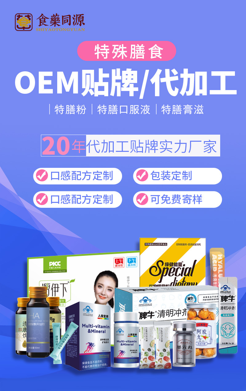 武汉食药同源医药研究中心专注口服液、特殊膳食、固体饮料、植物饮料、代餐粉、压片糖果、膏滋、丸剂、等食品贴牌代加工定制,OEM/ODM 生产与研发,欢迎来厂参观考察。