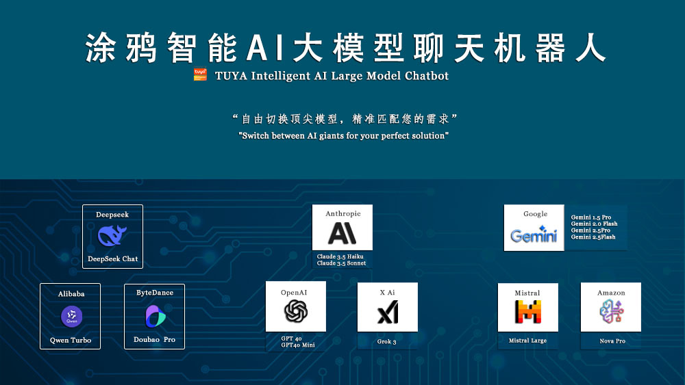 Tuya Smart, AIoT developer platform, integrates top-tier large language models (LLMs) at a deep level, including: