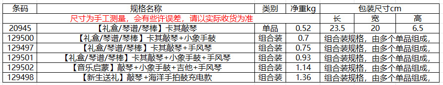 ![]() | [gift box/piano score/piano stick] khaki piano + little elephant tambourine + accordion | ¥79.7 / ≈ 960 ₽ | 189 | 5888343236424 | |