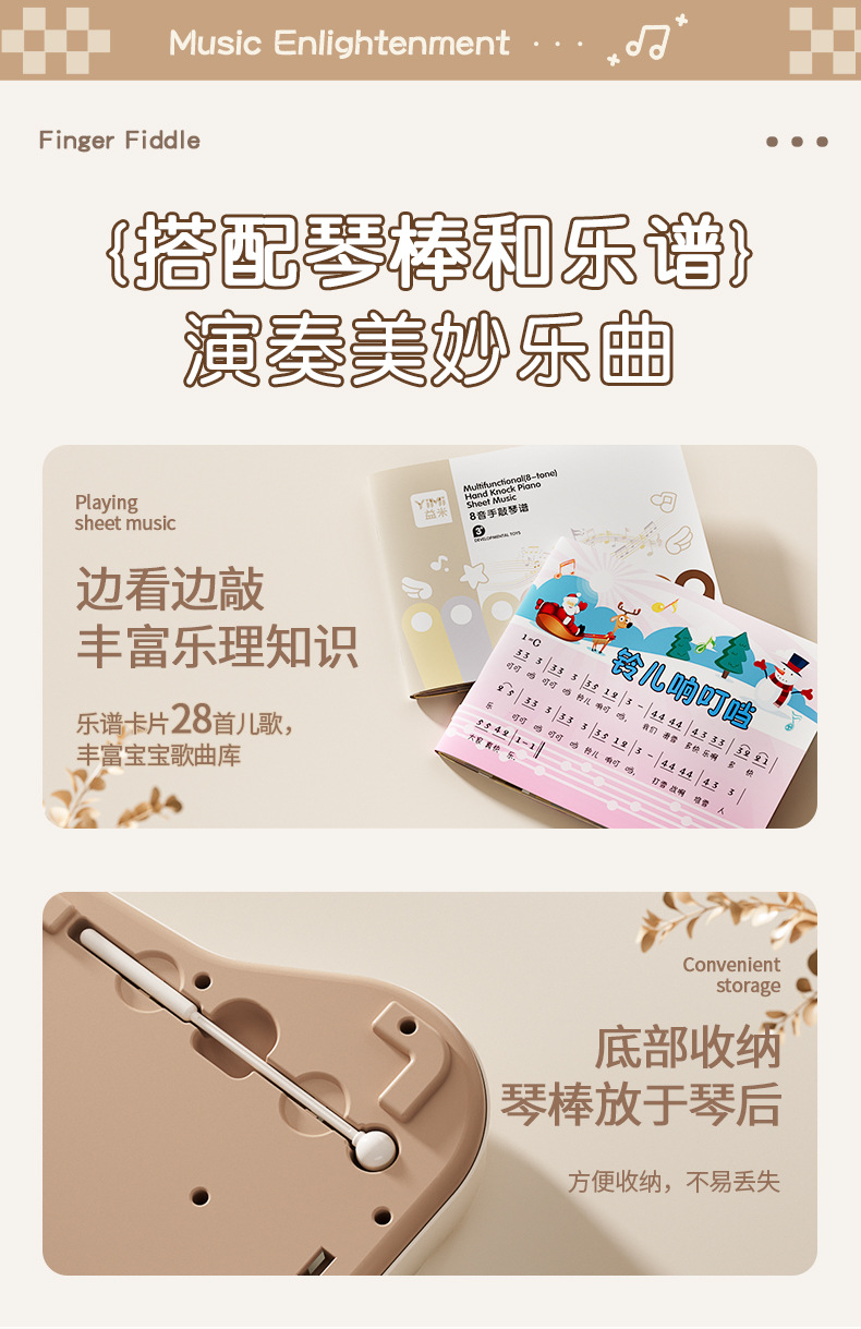 Детский восьмитональный пианино Yimi для игры с ударом, ксилофон, музыкальная игрушка