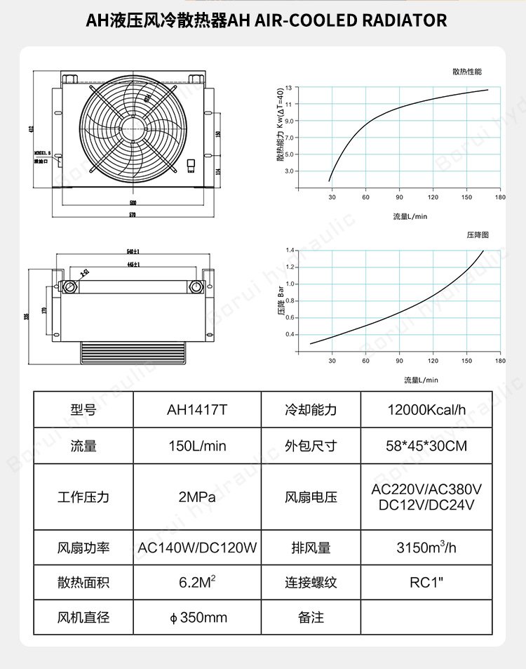 Гидравлический радиатор с воздушным охлаждением Ah1417T 12V/24V/220V/380V большой площади теплообмена