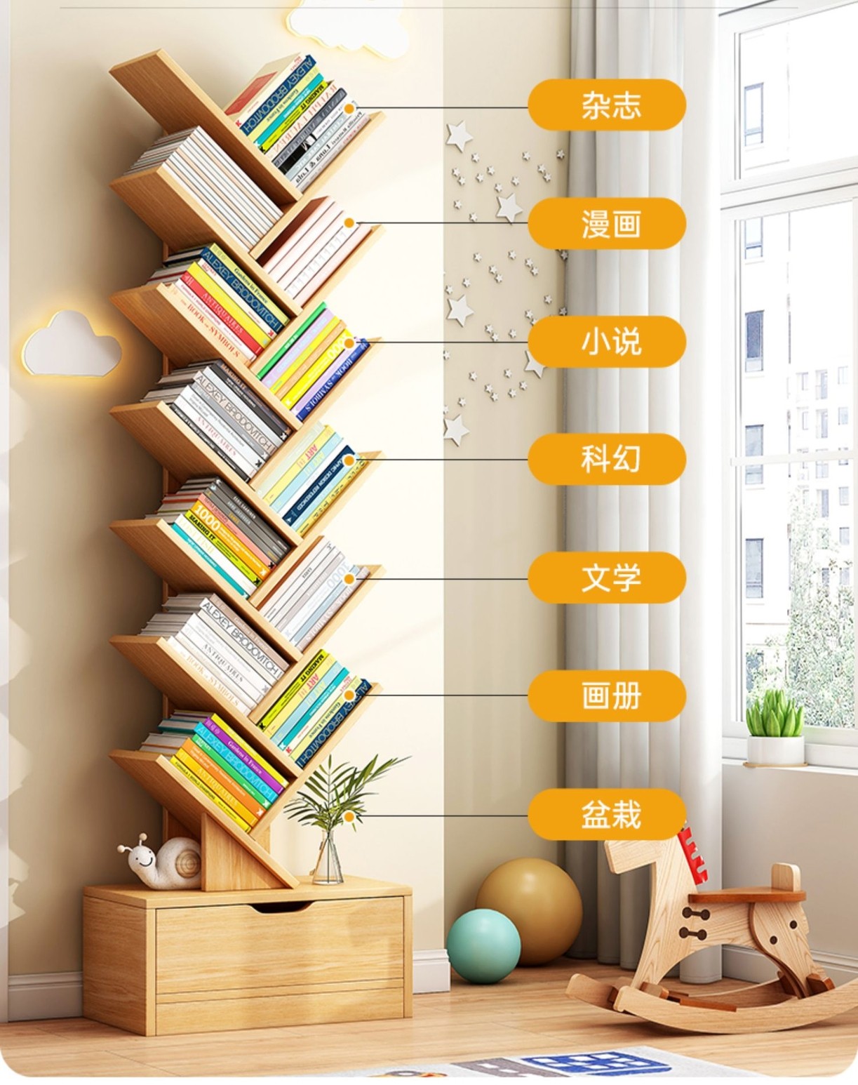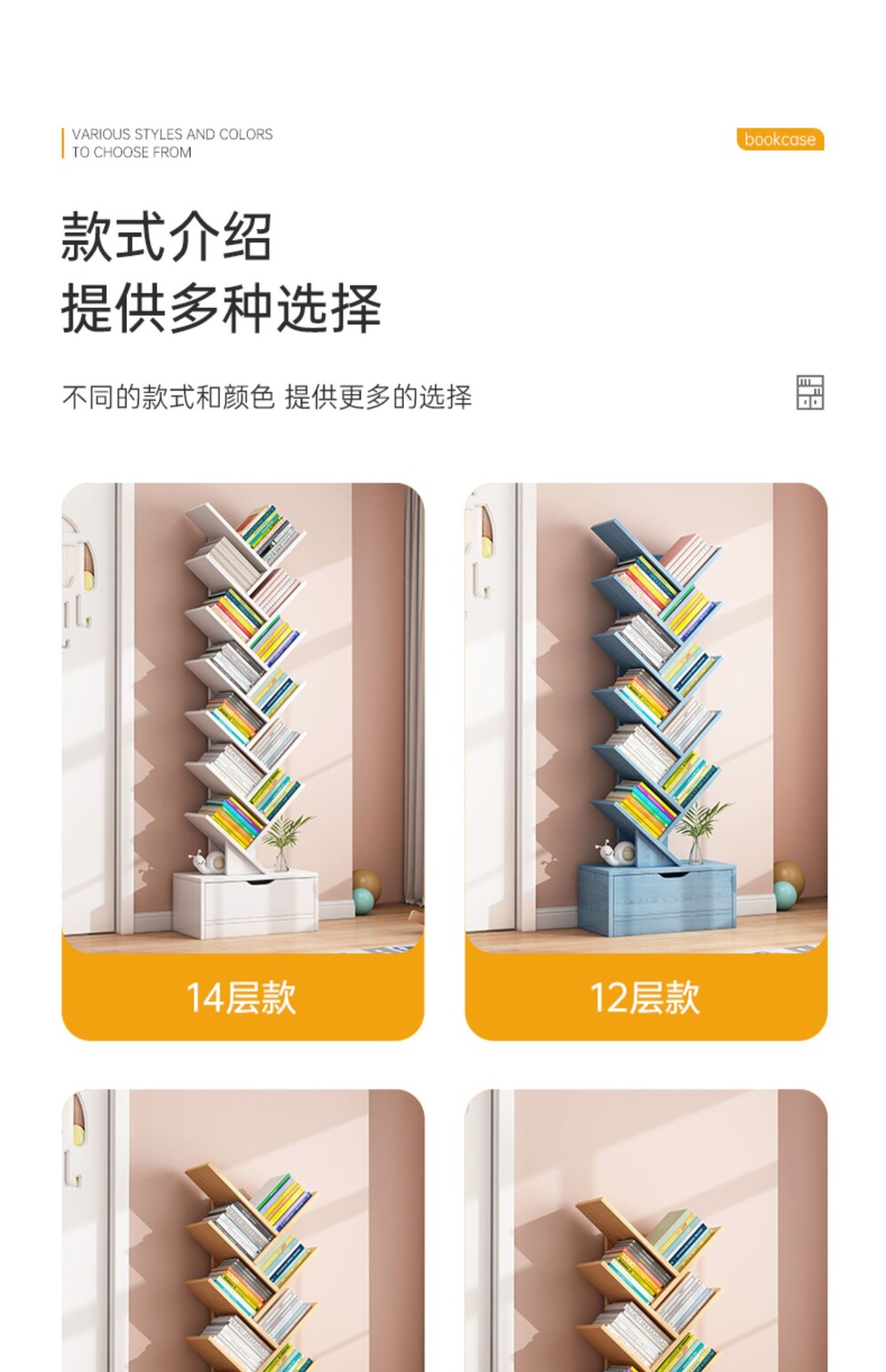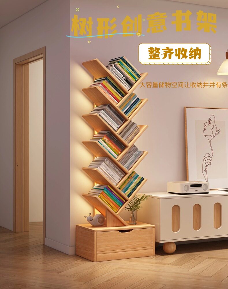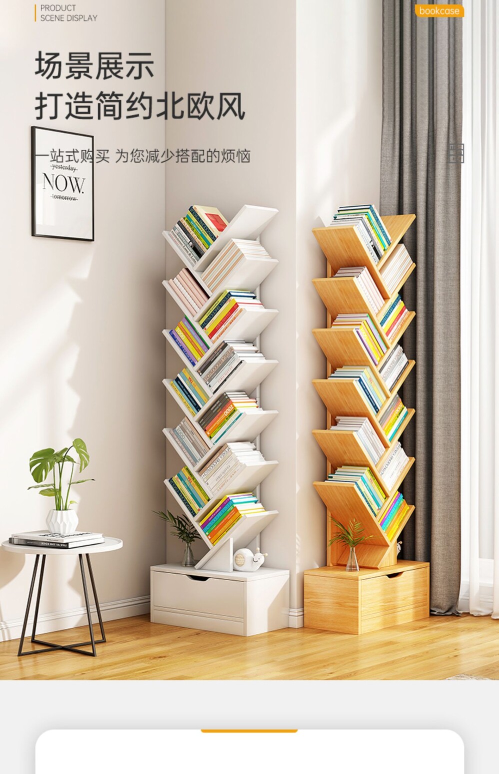 Книжная полка в виде дерева, напольный стеллаж для хранения, многоуровневая, для гостиной, простой узкий книжный шкаф, интегрированный настенный стеллаж