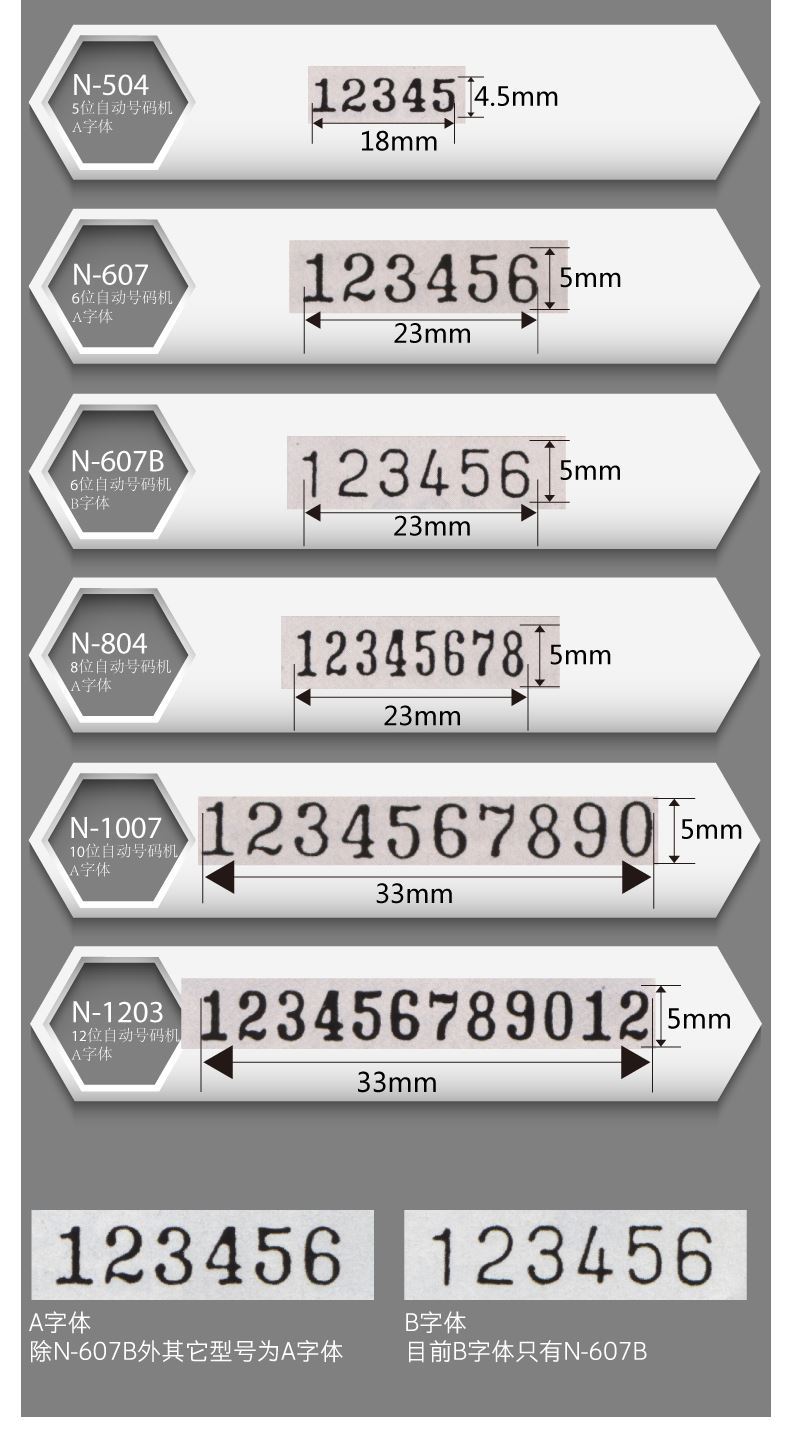 5位数,字高5mm,小巧轻便,适合办公室,档案室编号用。