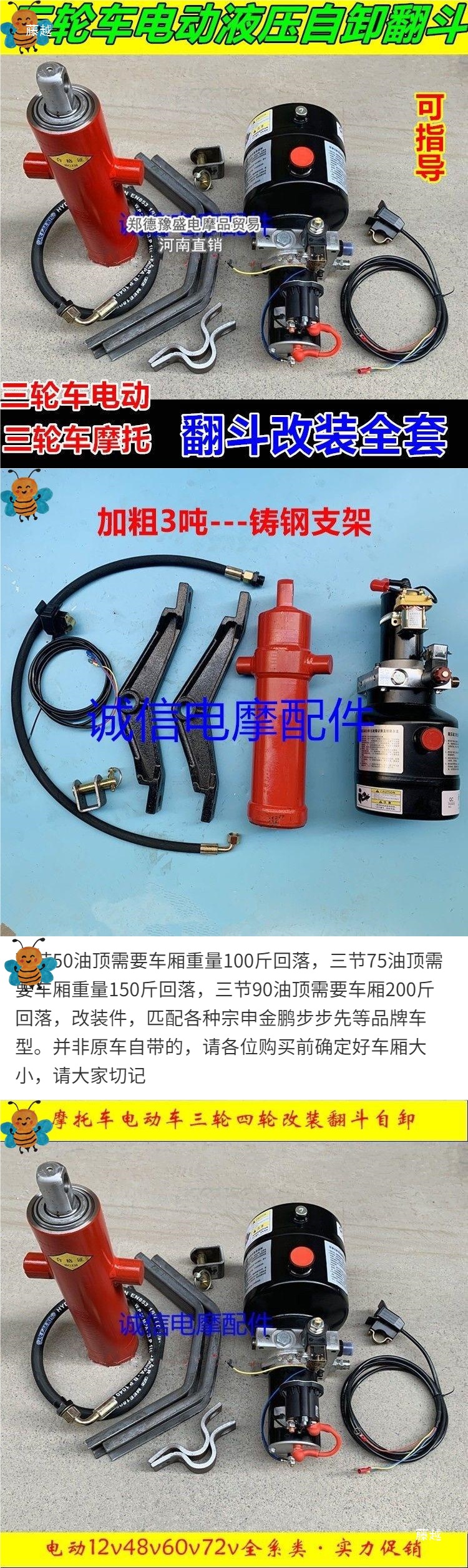 Электрический гидравлический механизм для трехколесного самосвала, модифицированный подъемник 12V48V72
