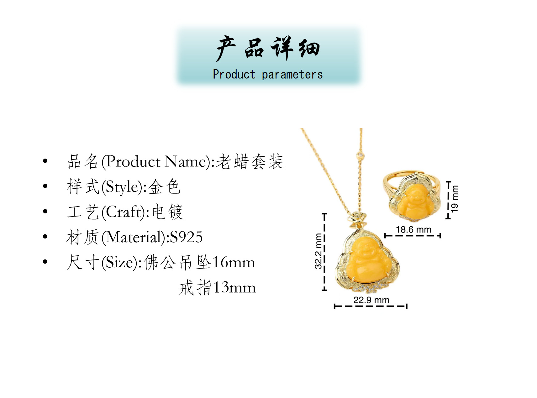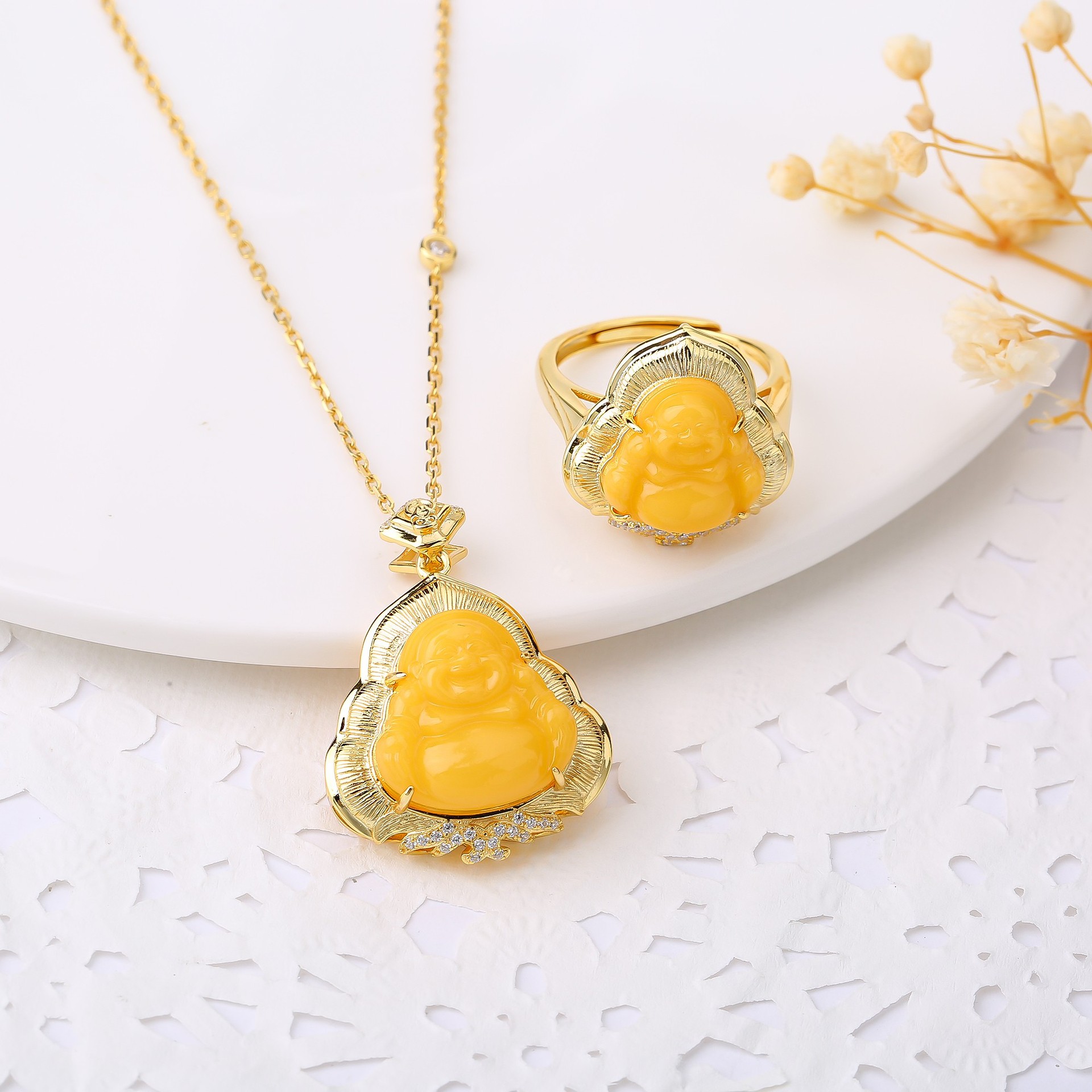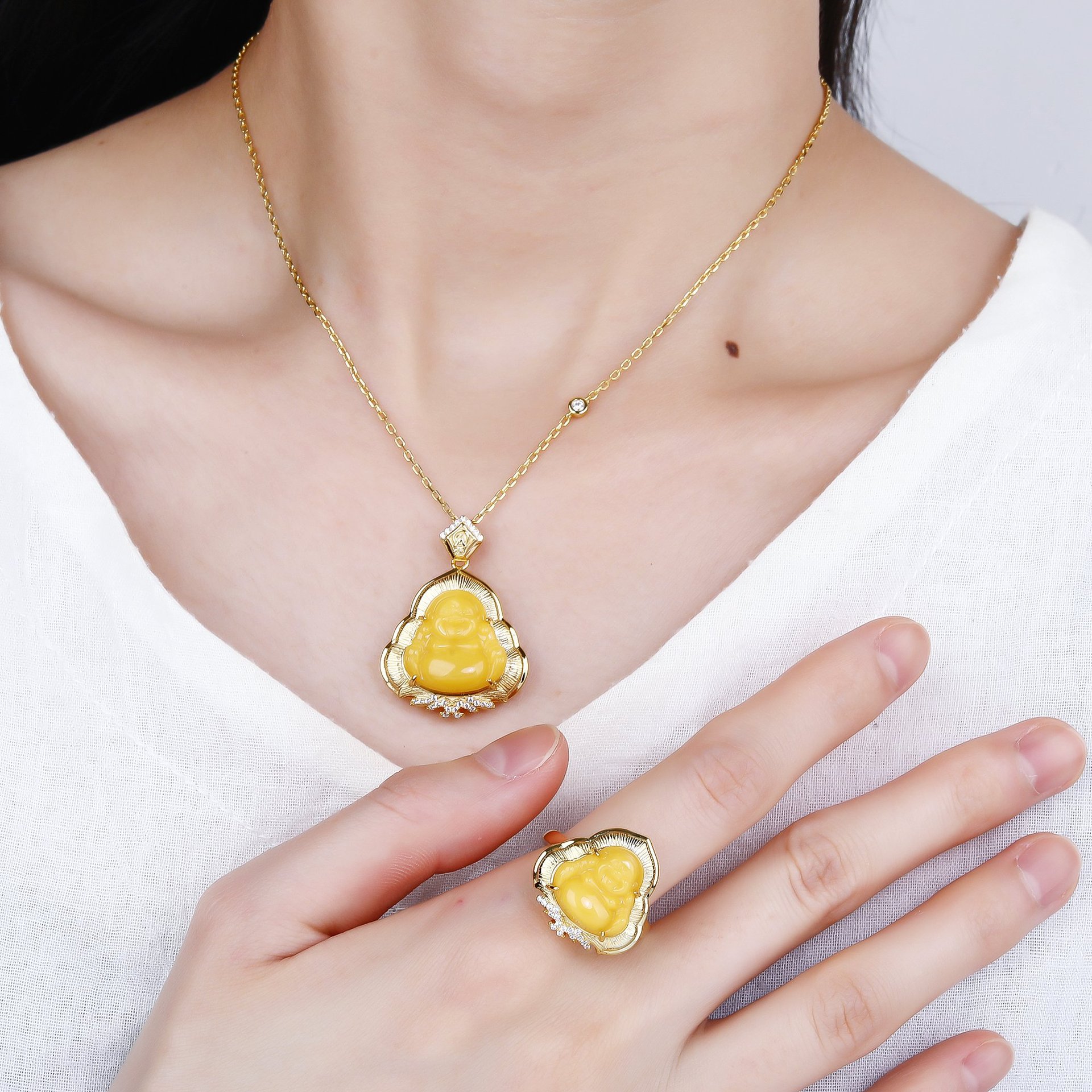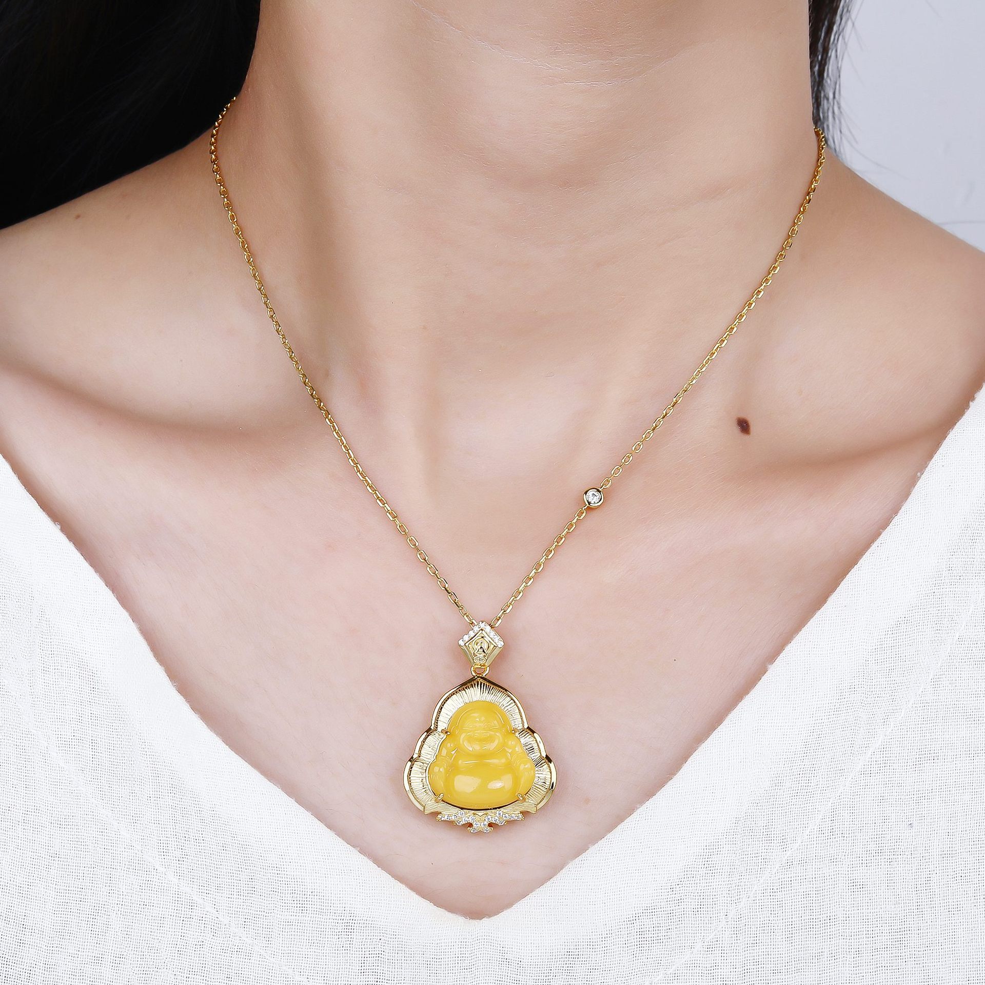 S925 серебро натуральный русский старый пчелиный воск подвеска янтарь китайский стиль простой матовый комплект с Буддой Майтрейя