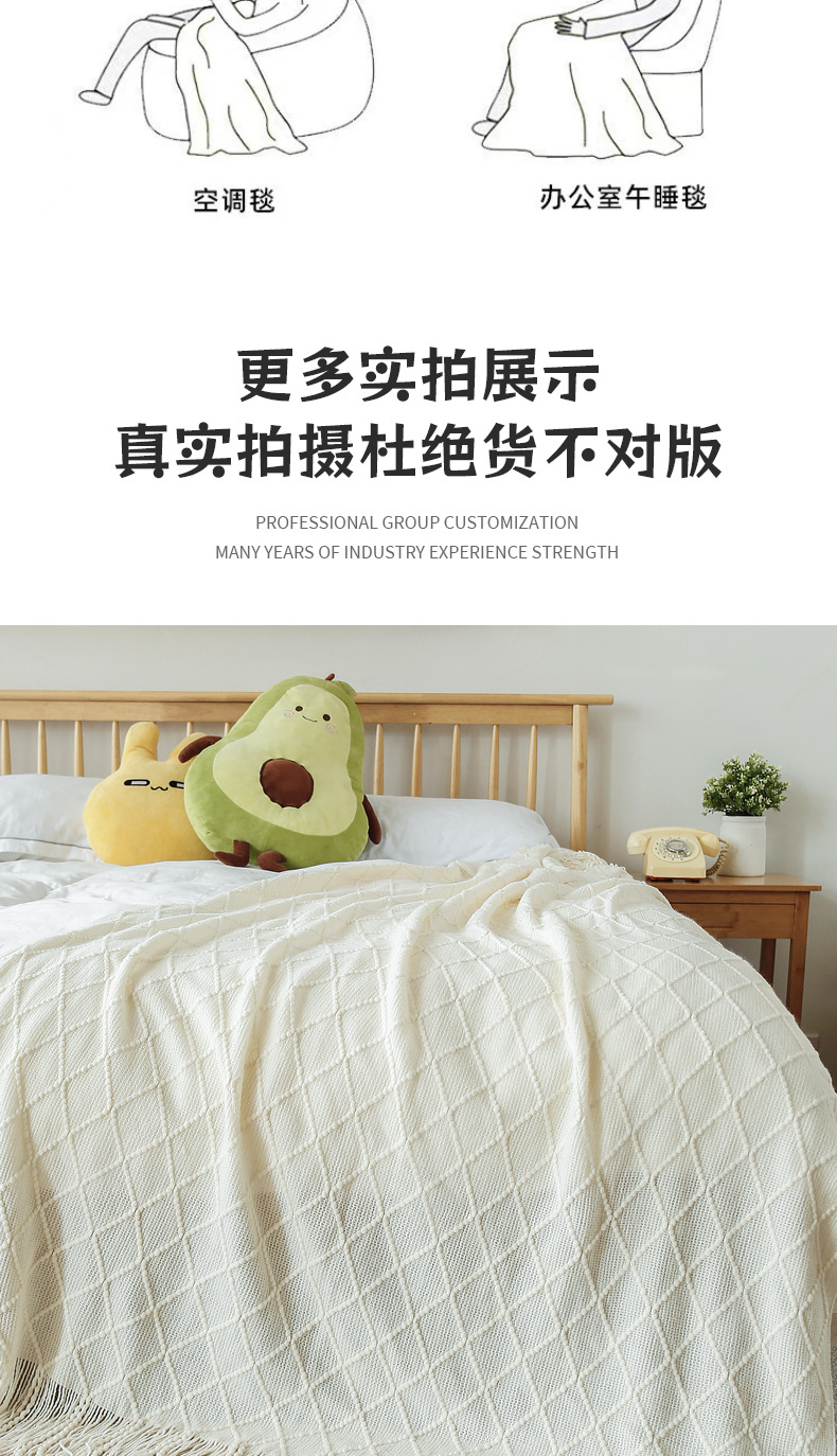 Современный простой плед с алмазным узором, однотонный, вязаный, оптовая кастомизация, плед для сна в автомобиле B&B