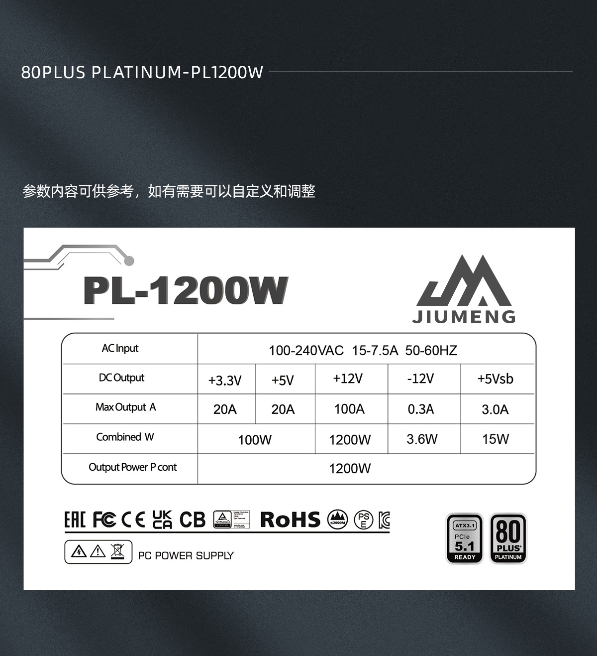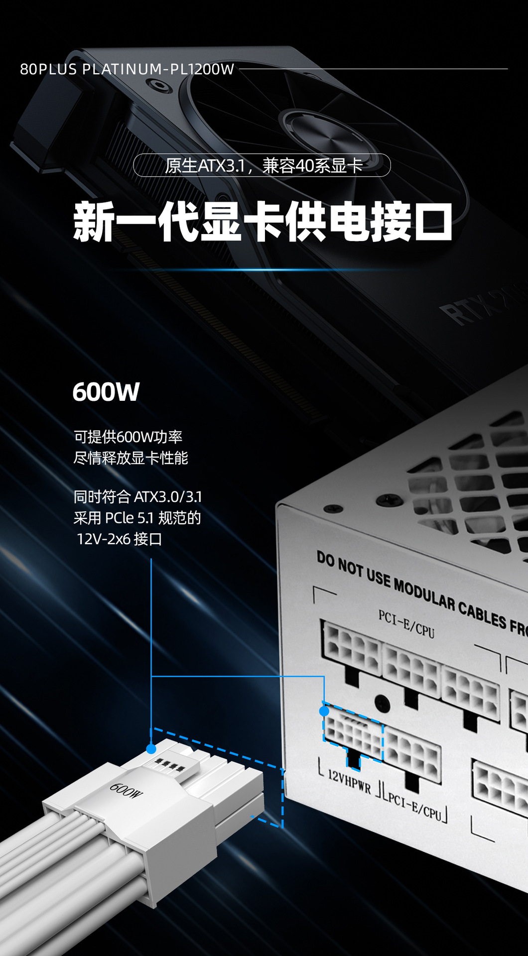 Блок питания 80 Plus Platinum 1200W полностью модульный для настольного ПК