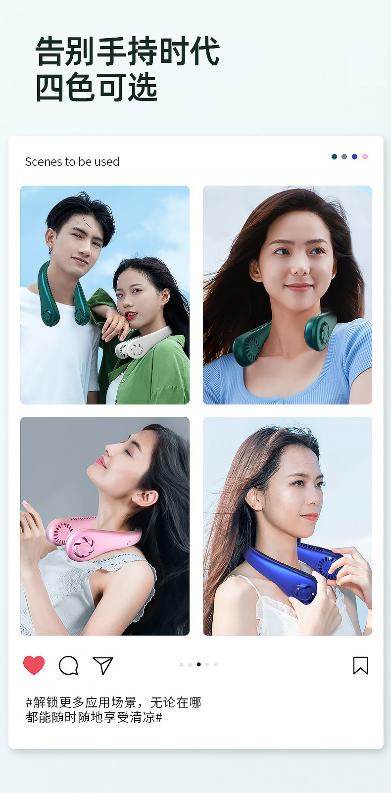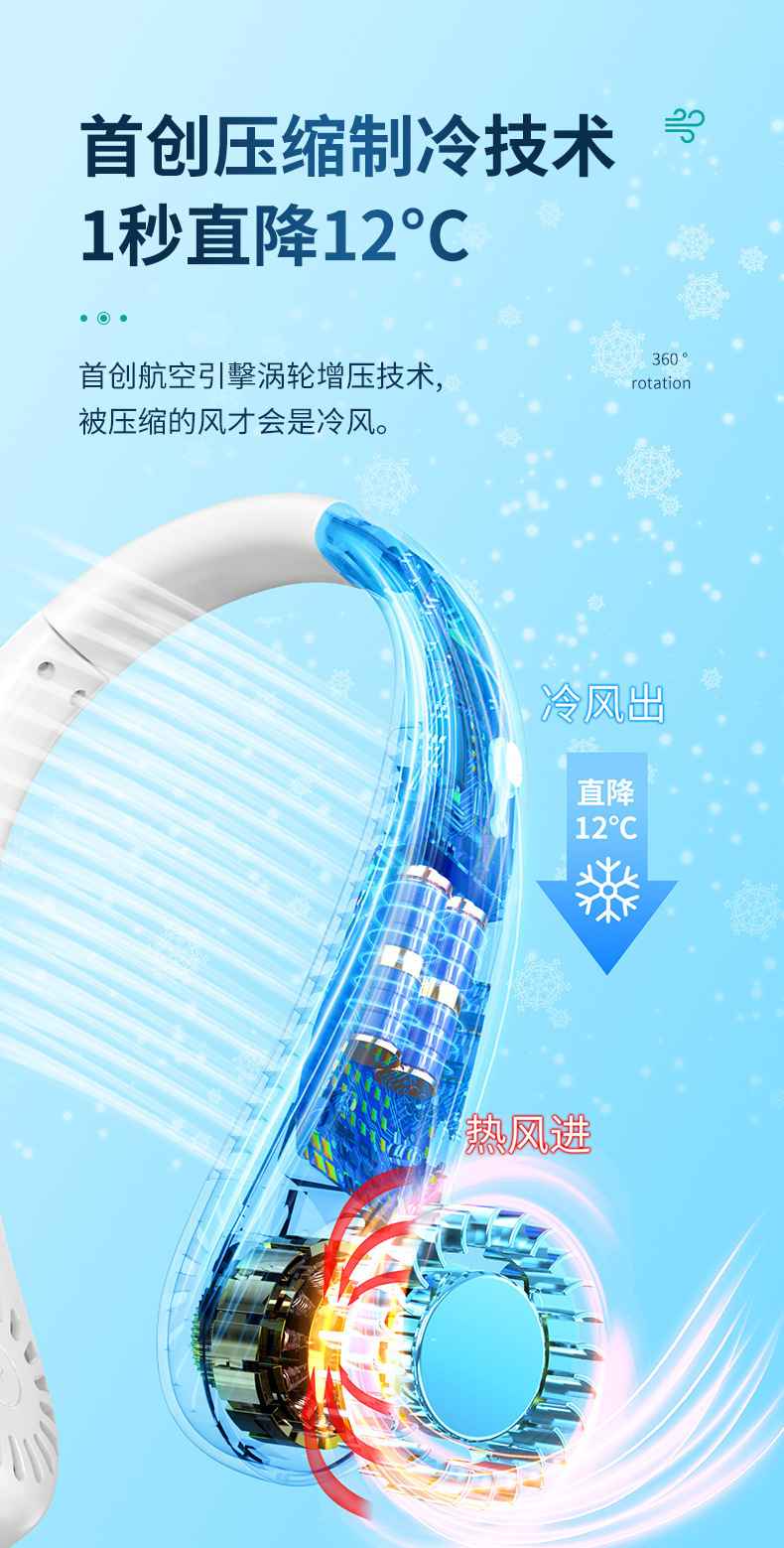 网红新款无叶涡轮挂脖风扇英文户外USB可充电小型制冷高续航静音挂脖风扇,产品已通过CE ROHS FCC认证,48小时发货,可免费贴标,支持定制LOGO,支持店管家发货,欢迎洽询。