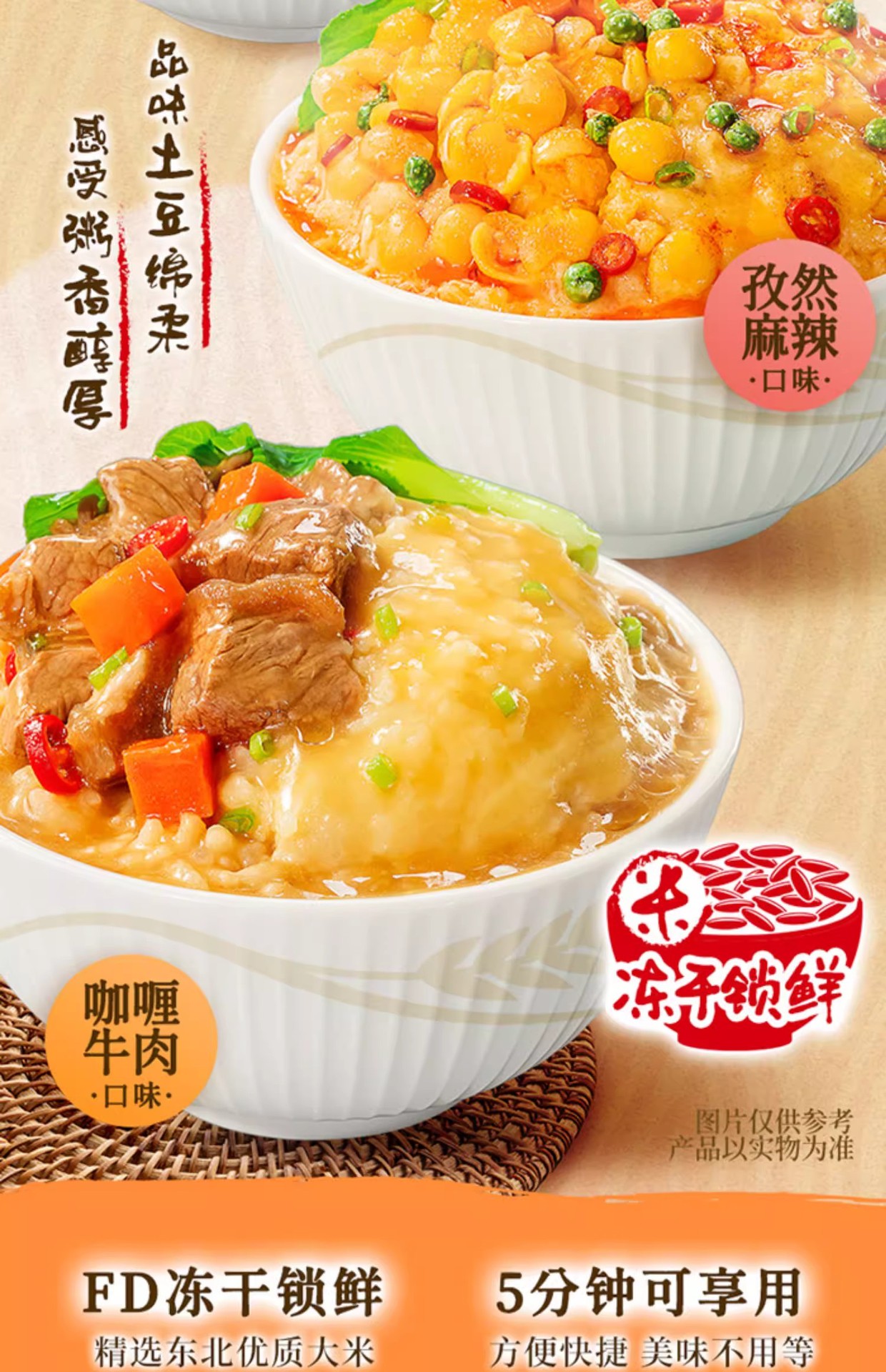 Хайфушенг картофельная каша быстрого приготовления Удобная еда для общежития Полуночный перекус Сублимированная Не требует приготовления Готовый завтрак