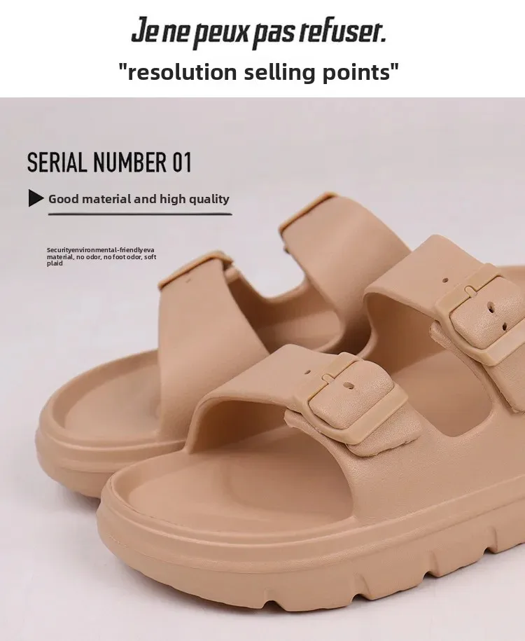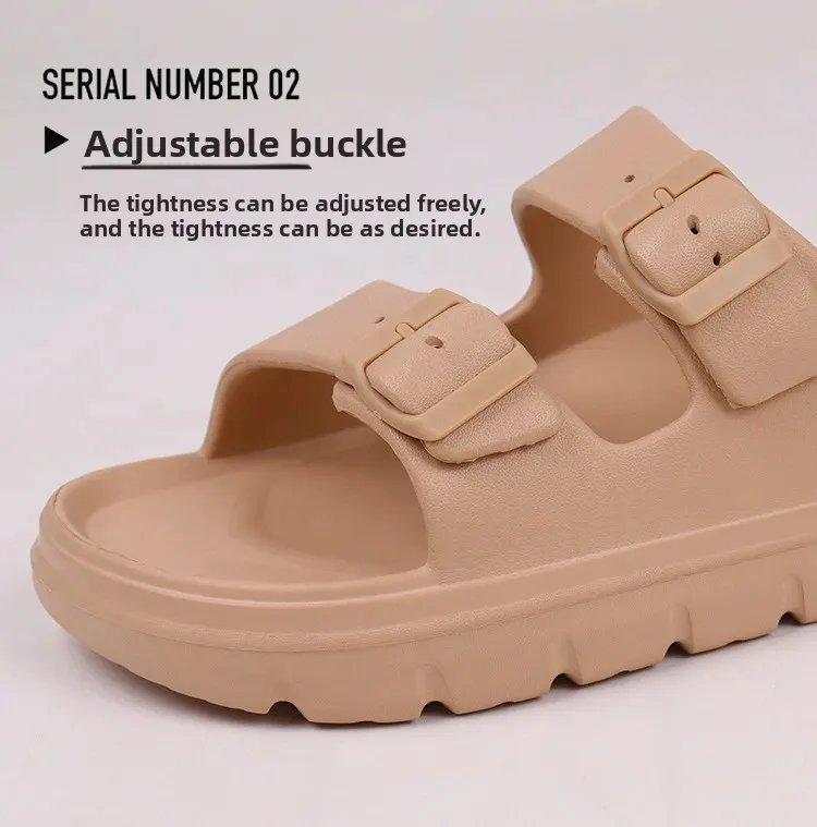 Тапочки 2025 года с двойной кнопкой для летней одежды, толстая подошва, нескользящие, с повышением роста, повседневные сандалии