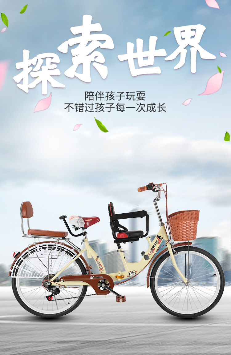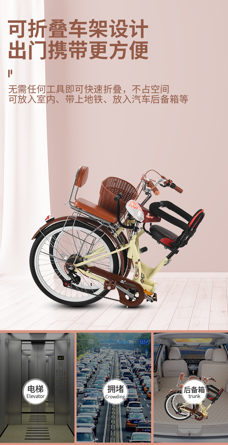 Складной велосипед для родителей и детей с ребенком, двойные передние и задние ограждения для забирания и высаживания детей, трехместный велосипед