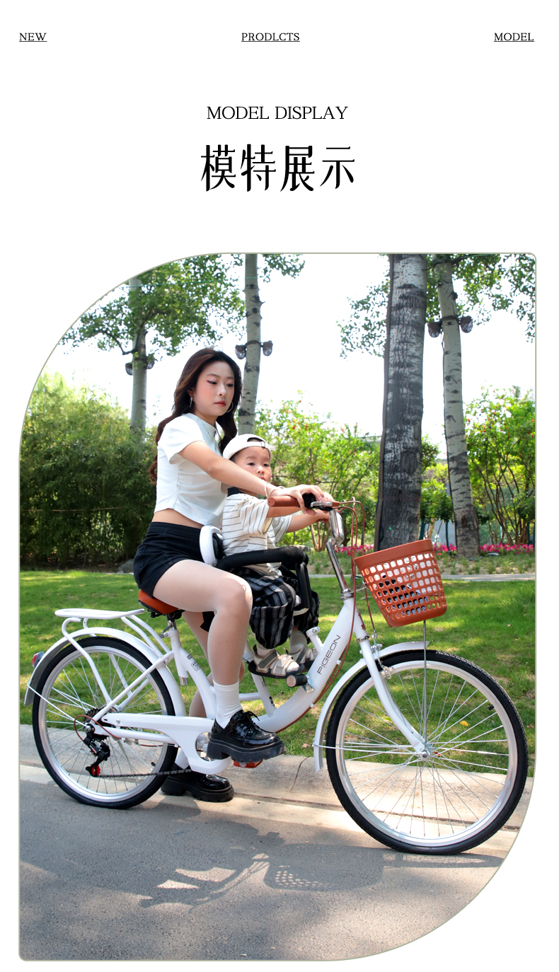 Велосипед для родителей и детей 24 дюйма, может перевозить троих детей для забирания и высаживания. Легкий велосипед с переменной скоростью для мамы и ребенка