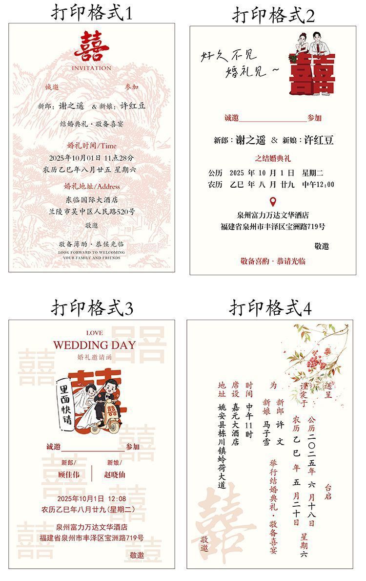 Приглашение 2025 Новое свадебное приглашение, благодарственное приглашение на банкет для молодоженов, печать свадебного приглашения для отелей, оптовая продажа