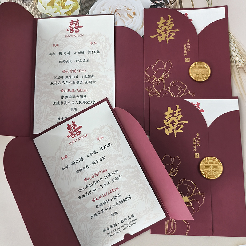 ![]() | Wine red wedding invitation printing format (including happy word fire paint stickers) | ¥0.85 / ≈ 10 ₽ | 29487 | 5887340081027 |