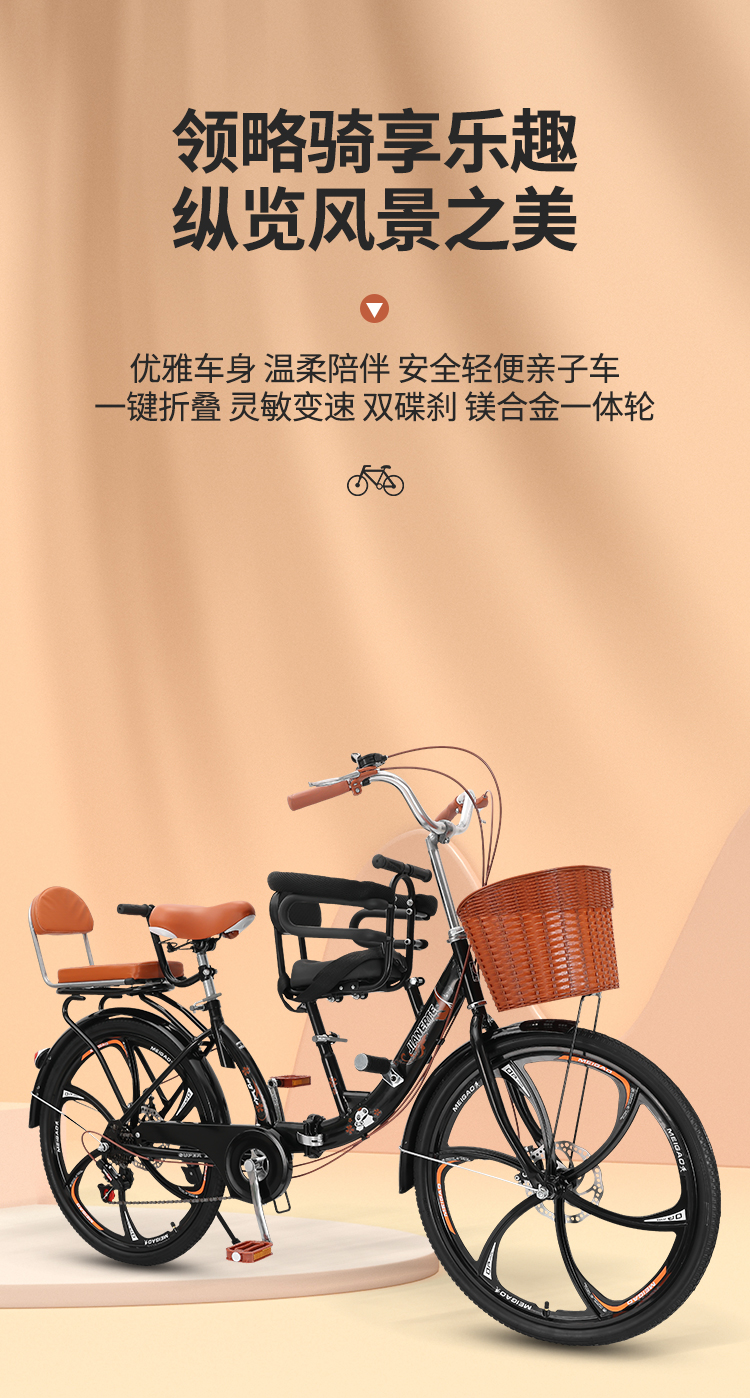 Велосипед для родителей и детей с ребенком, складной велосипед с защитным ограждением для мамы и ребенка, трехместный велосипед с дисковыми тормозами