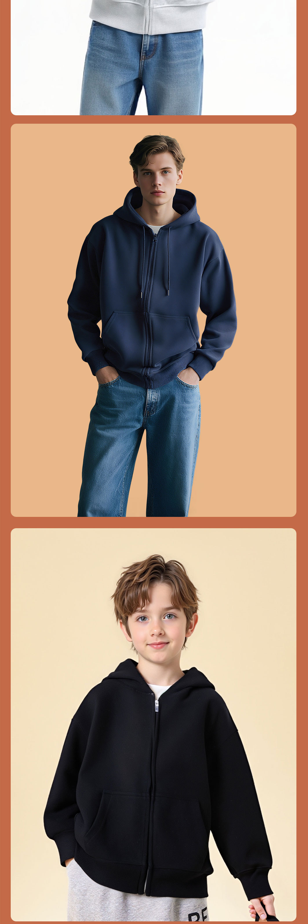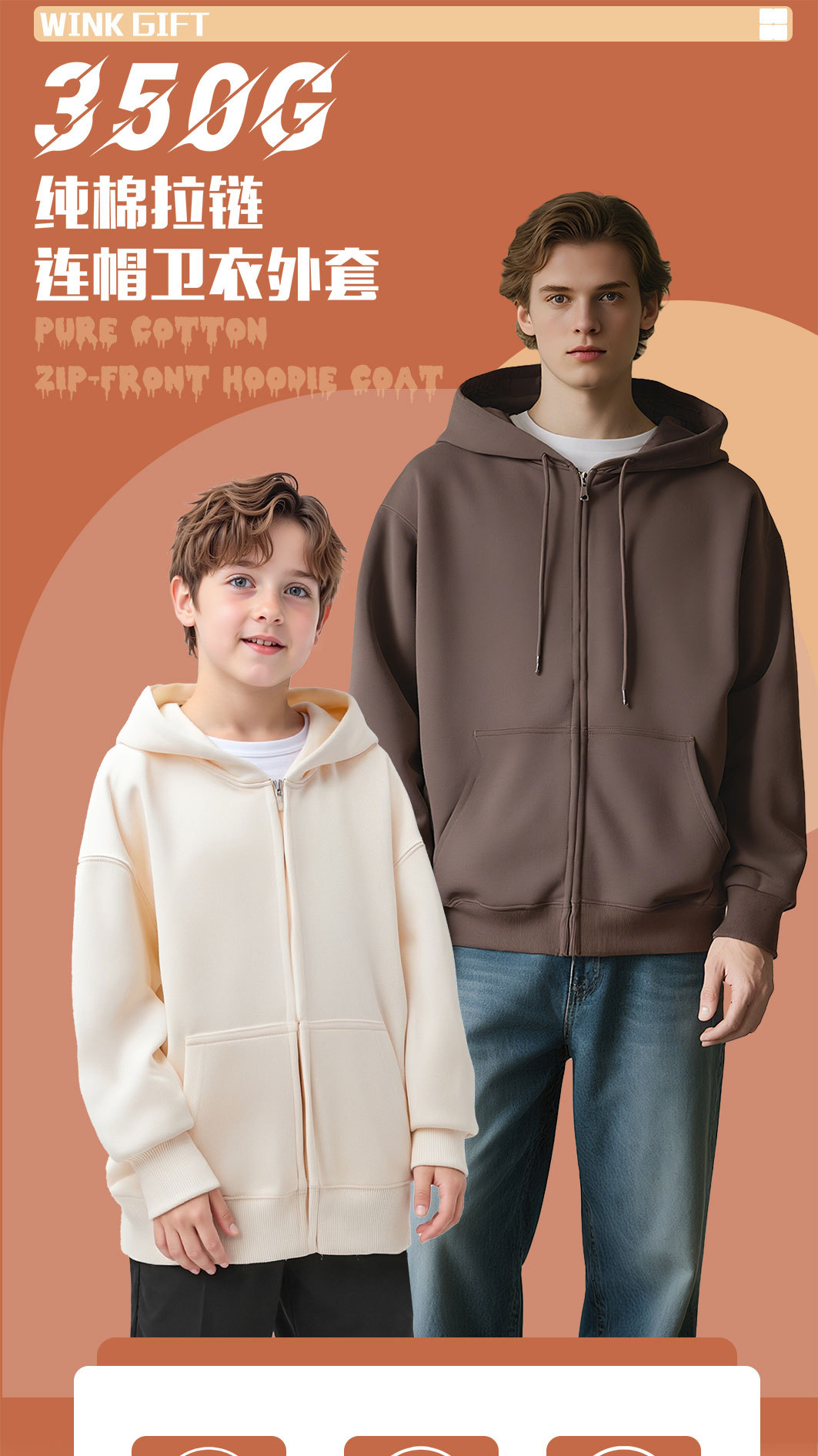 Толстовка на молнии из 350 г чистого хлопка для повседневной носки, родительско-дитя, свитшот для детей с печатью логотипа